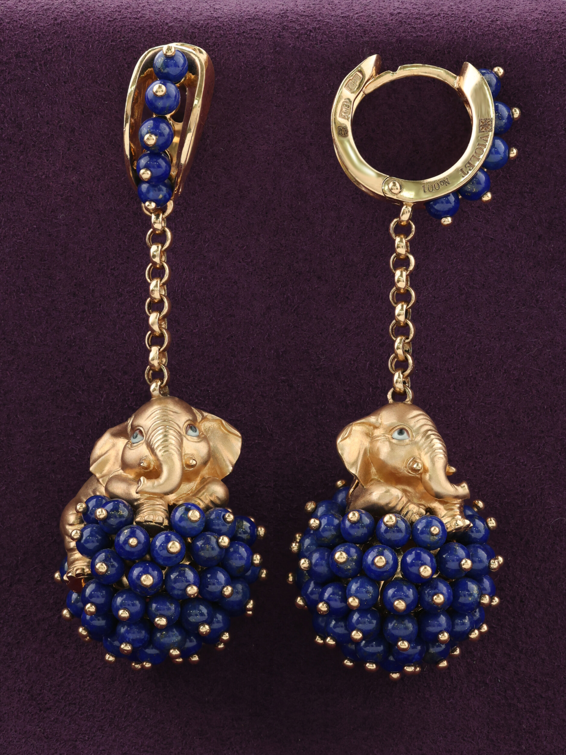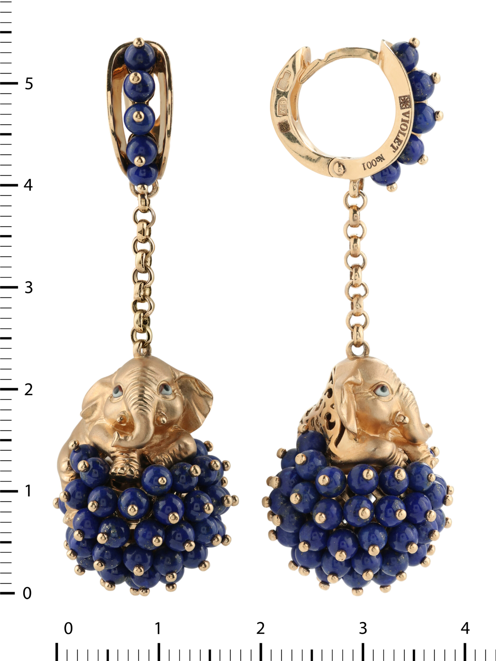 Серьги из золота c эмаль и лазуритом