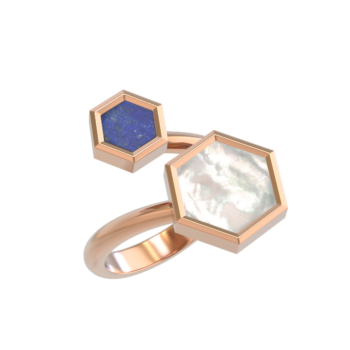 Кольцо из золота c лазуритом и перламутром