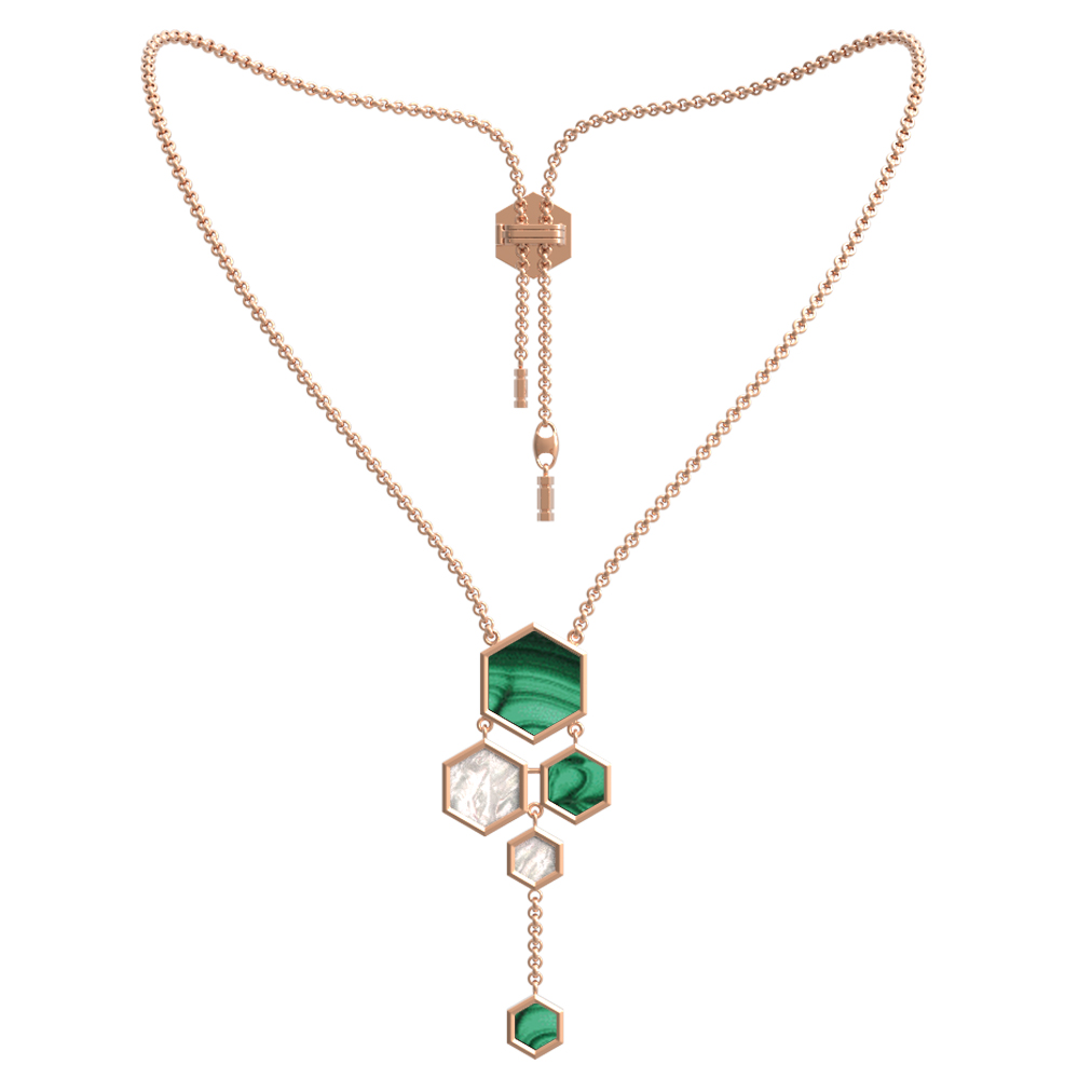 Колье из золота c малахитом и перламутром