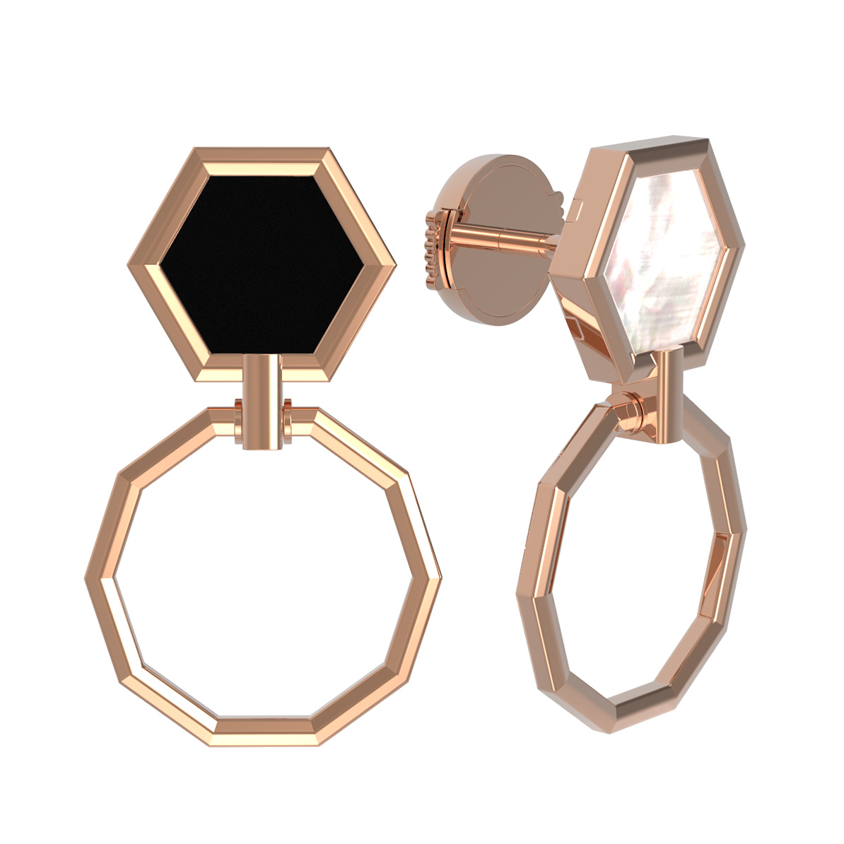 Серьги из золота c ониксом и перламутром