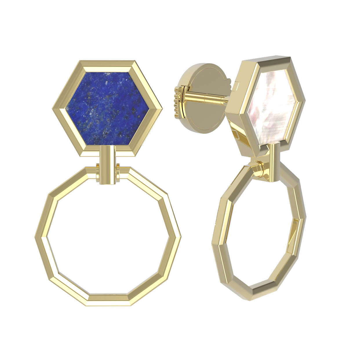 Серьги из лимонного золота c лазуритом и перламутром