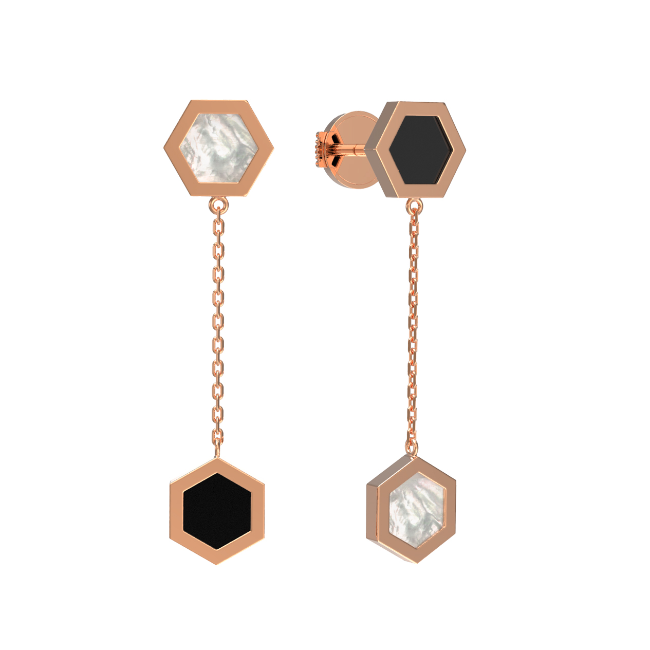 Серьги из золота c ониксом и перламутром