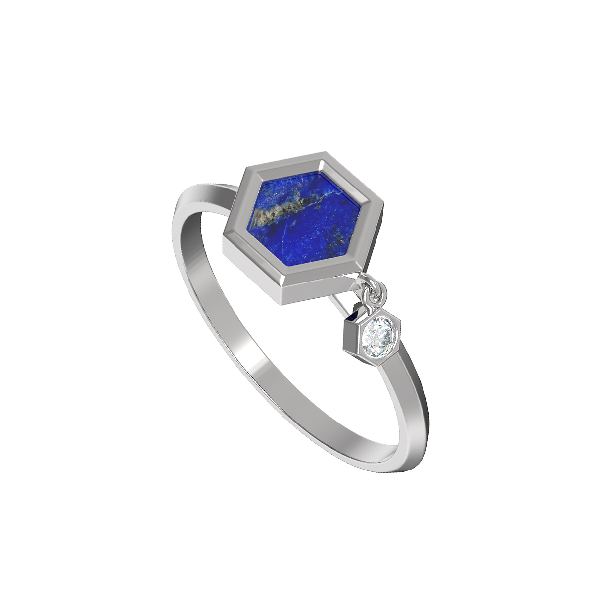 Кольцо из белого золота c бриллиантами и лазуритом