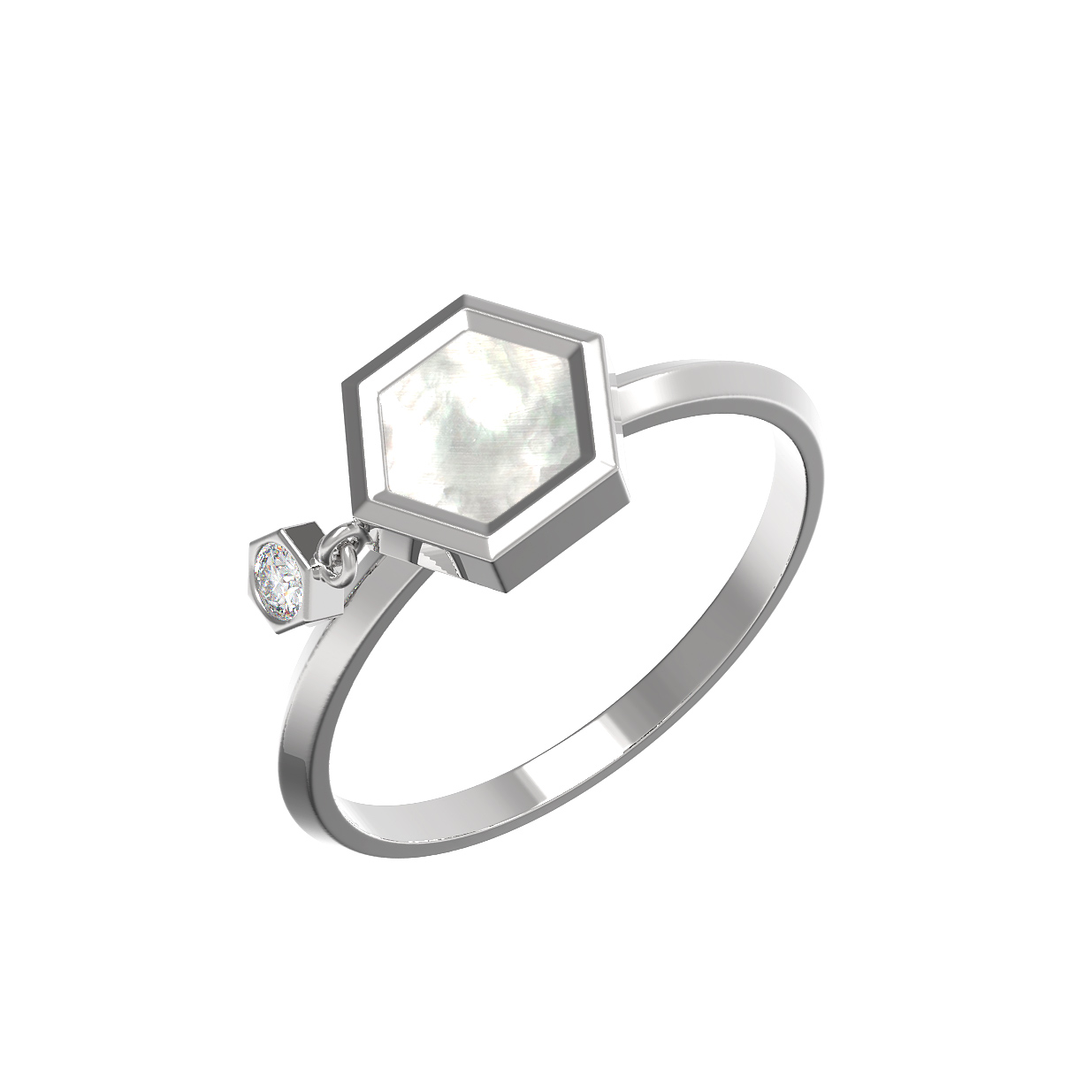 Кольцо из белого золота c бриллиантами и перламутром