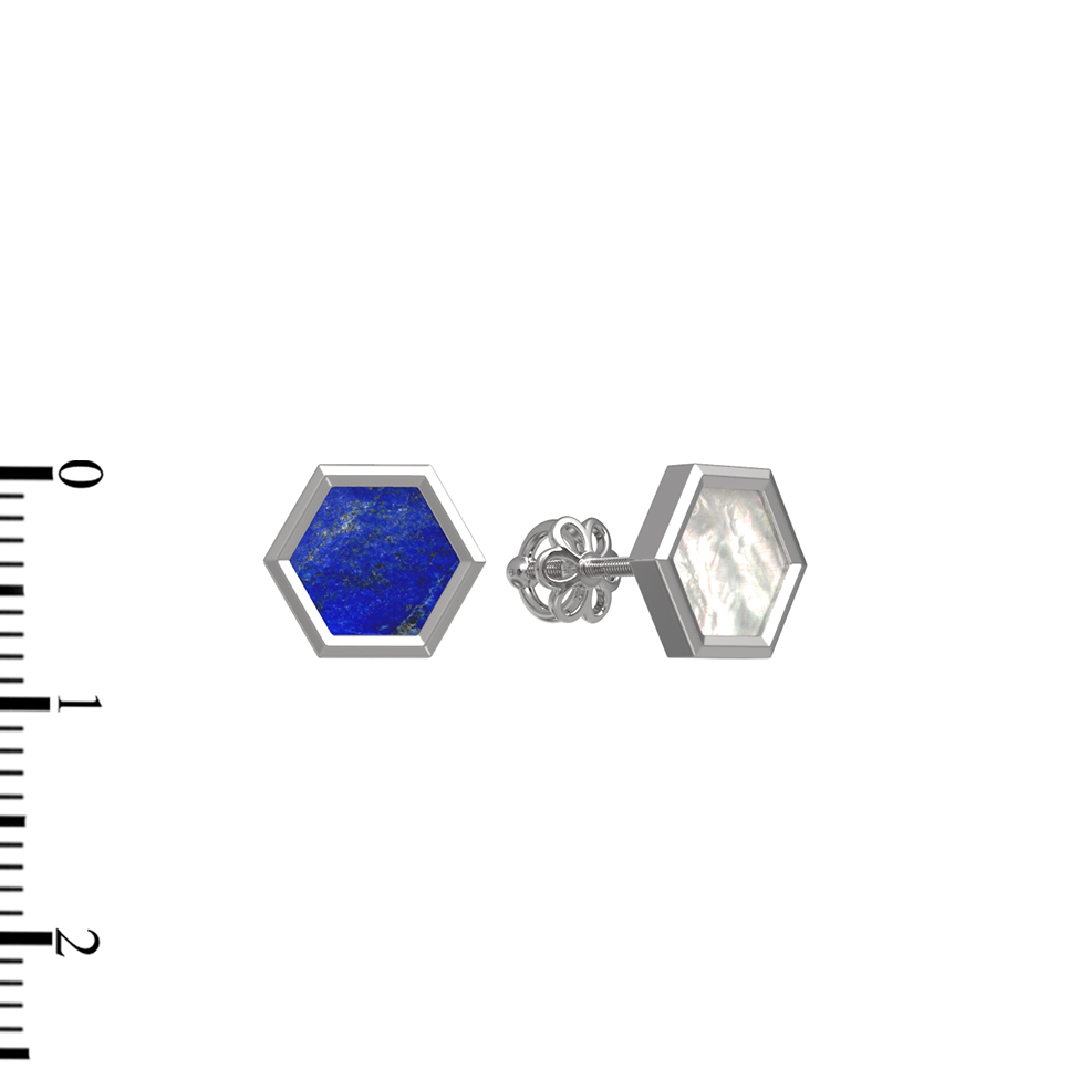 Серьги из белого золота c лазуритом и перламутром