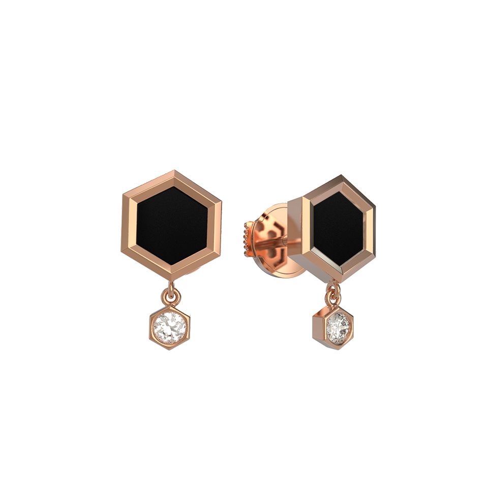 Серьги из золота c бриллиантами и ониксом