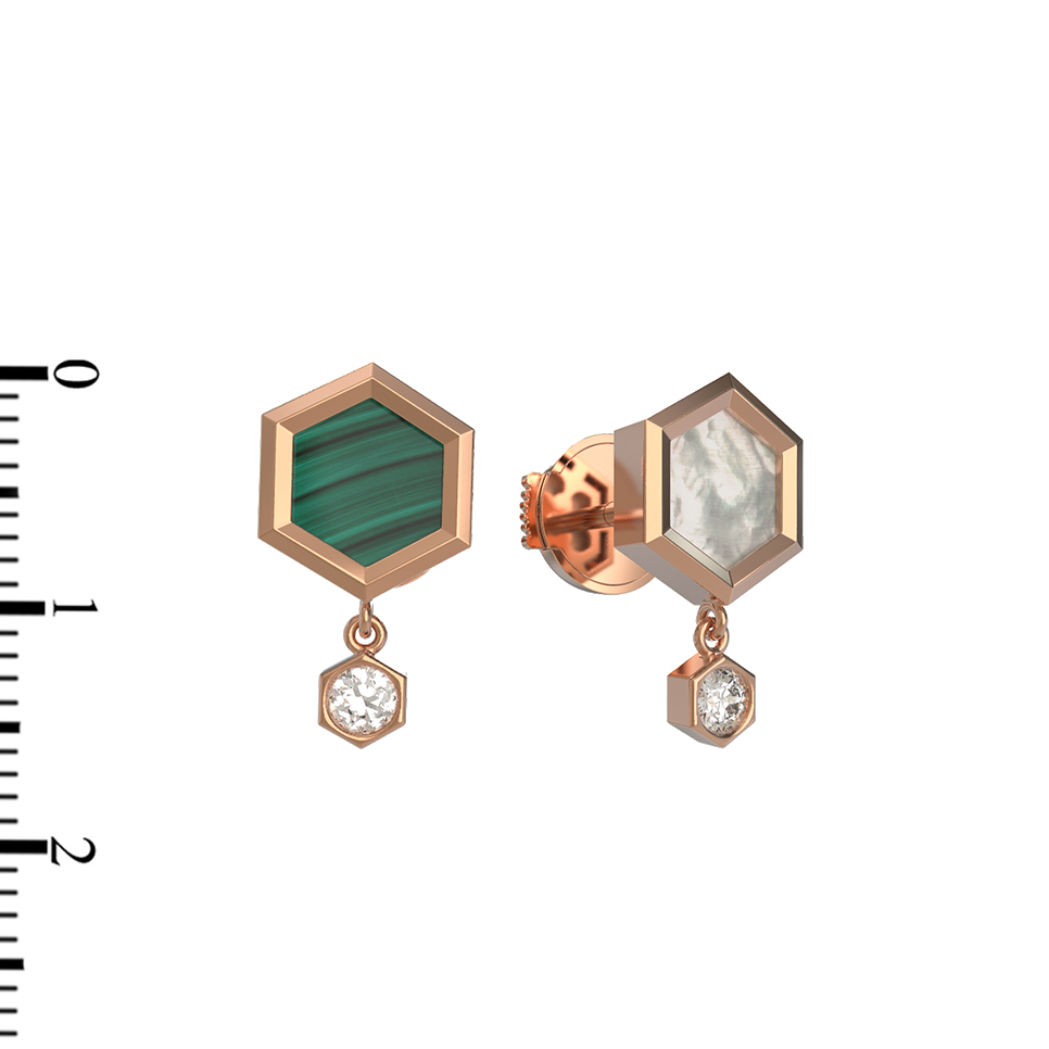 Серьги из золота c бриллиантами, малахитом и перламутром