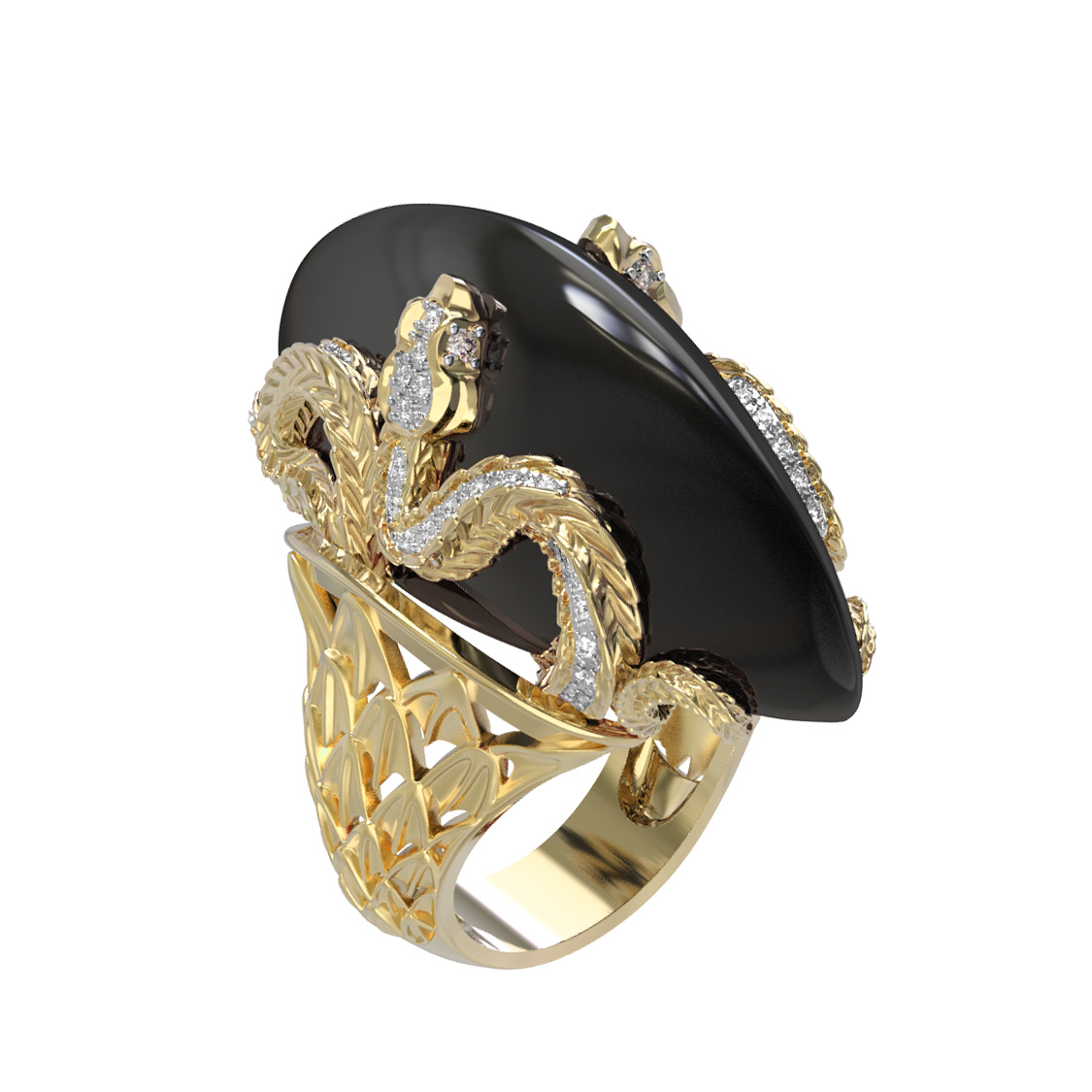 Кольцо из лимонного золота c бриллиантами и ониксом