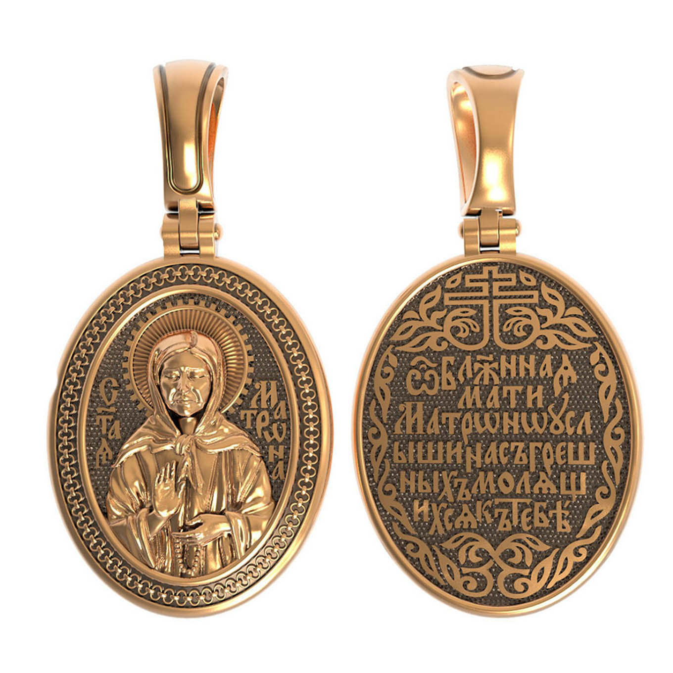 На лицевой стороне образка изображена Святая Матрона Московская.
