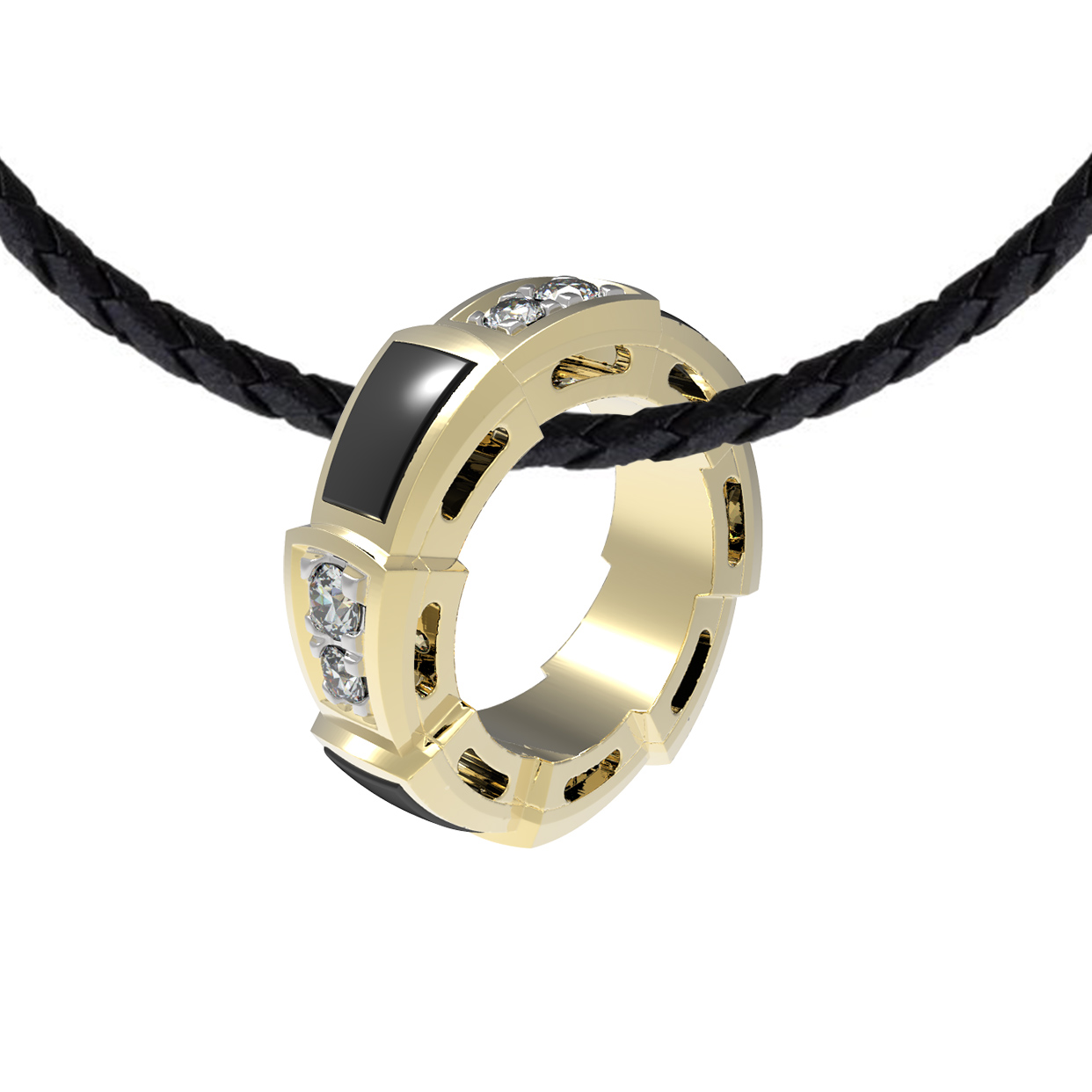 Подвеска из лимонного золота c бриллиантами и ониксом