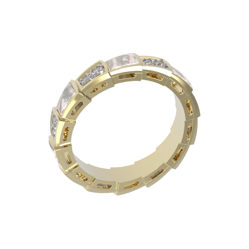 Кольцо из лимонного золота c бриллиантами и перламутром
