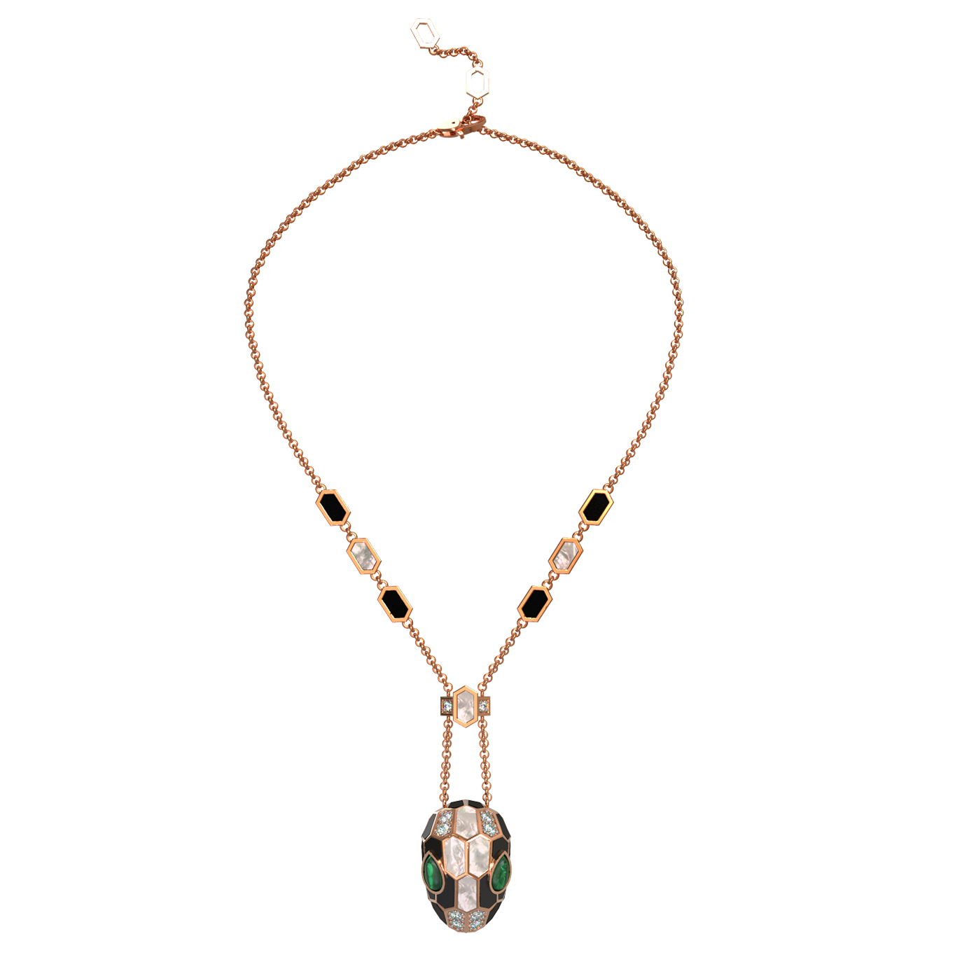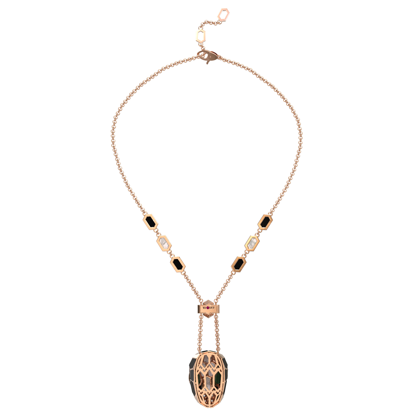 Колье из золота c бриллиантами, рубином, ониксом, малахитом и перламутром