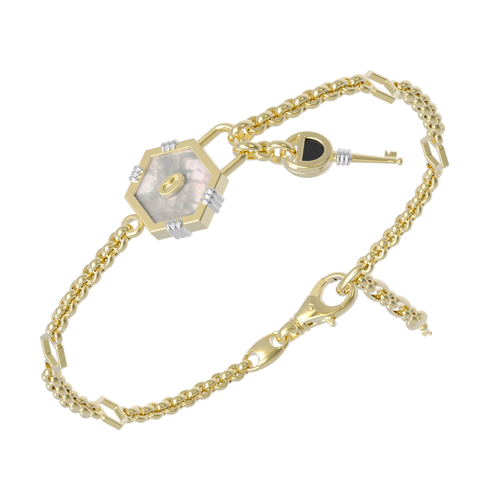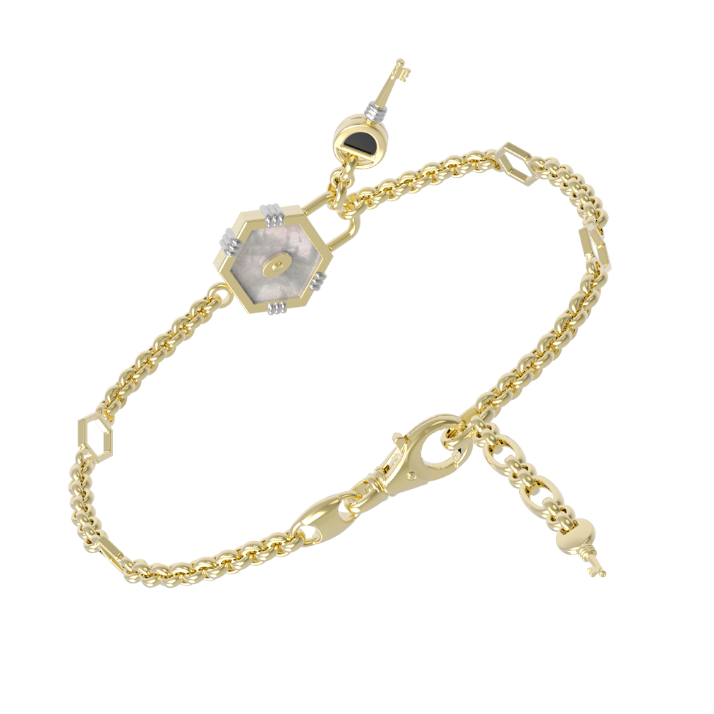 Браслет из лимонного золота c ониксом и перламутром