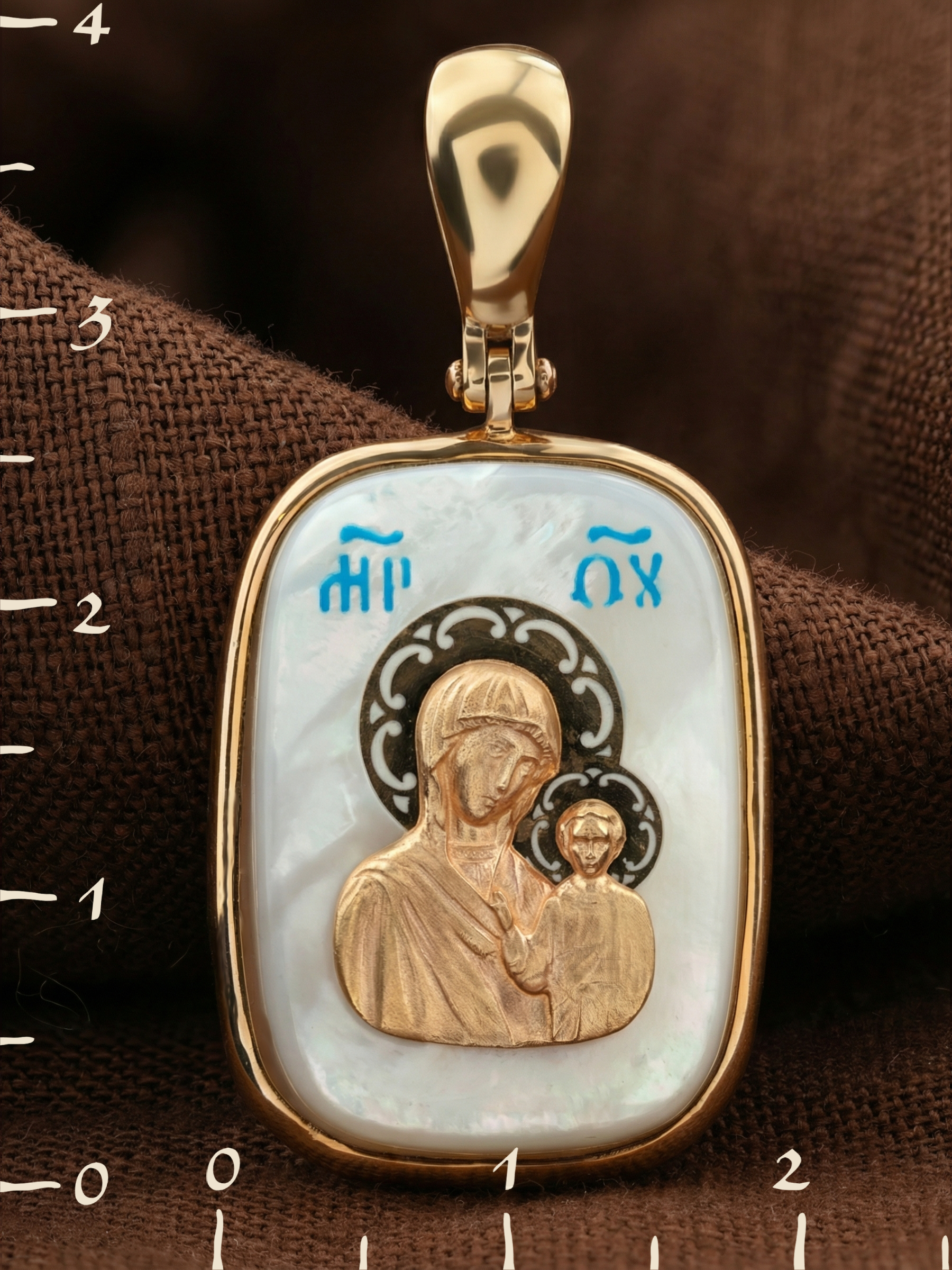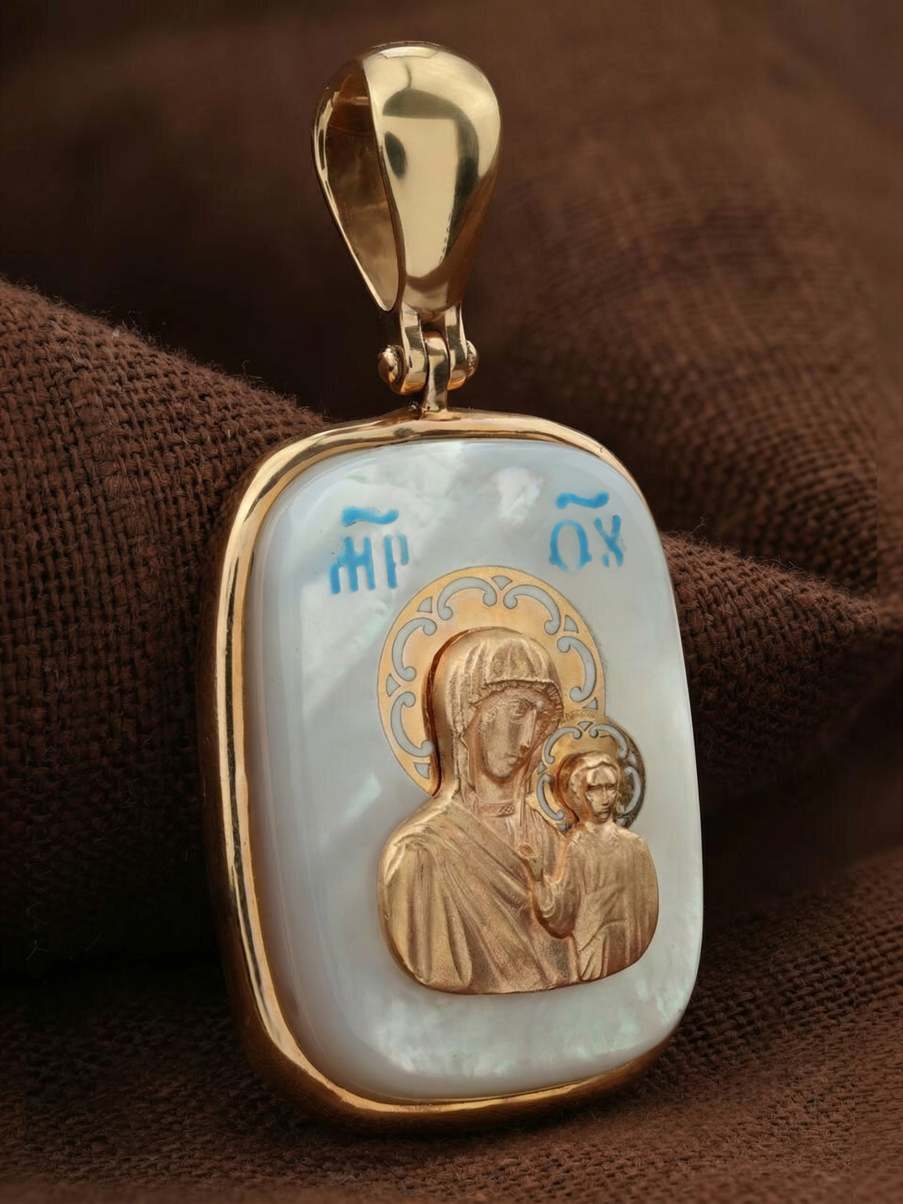 Образок из золота c эмаль и перламутром