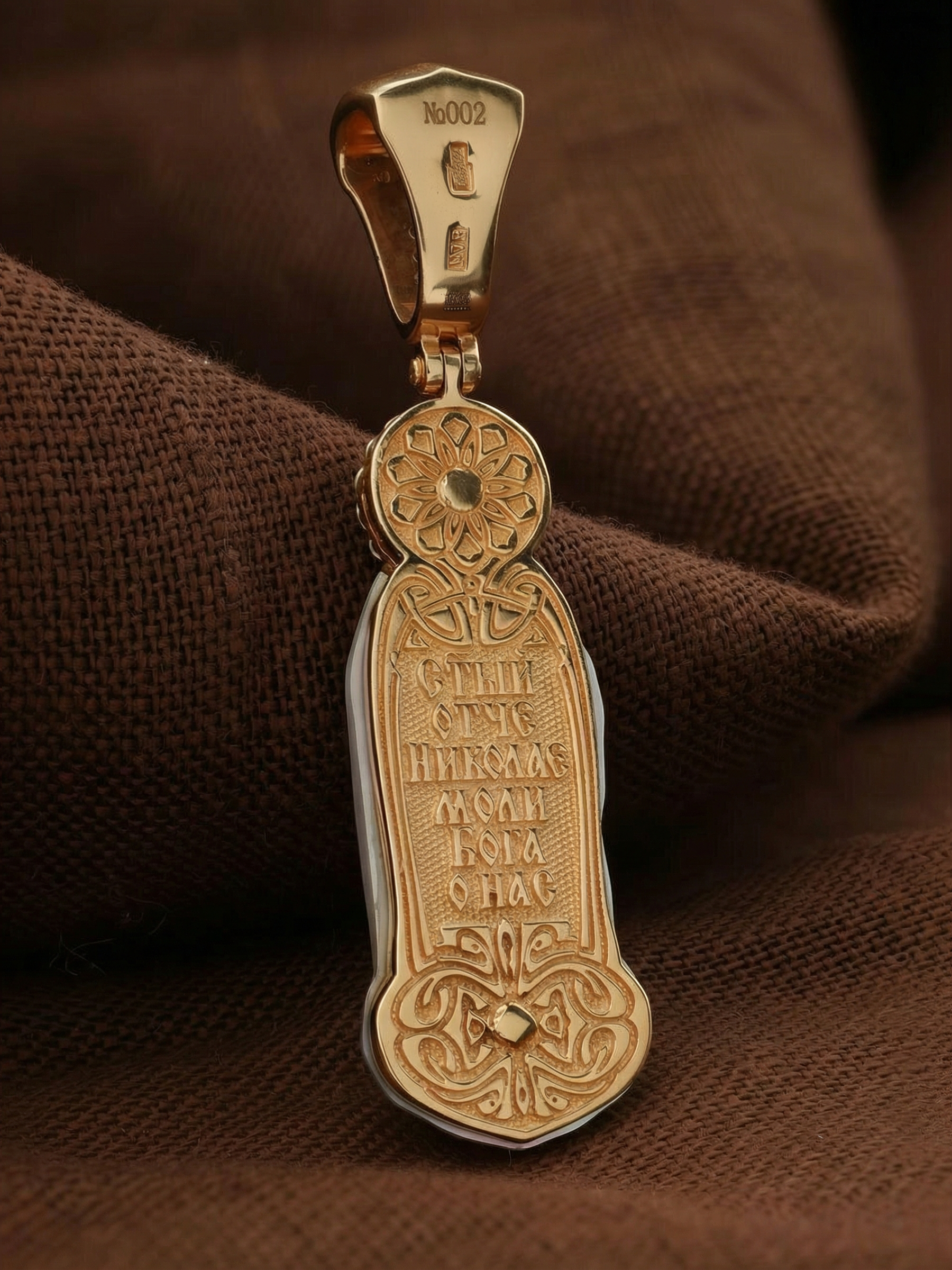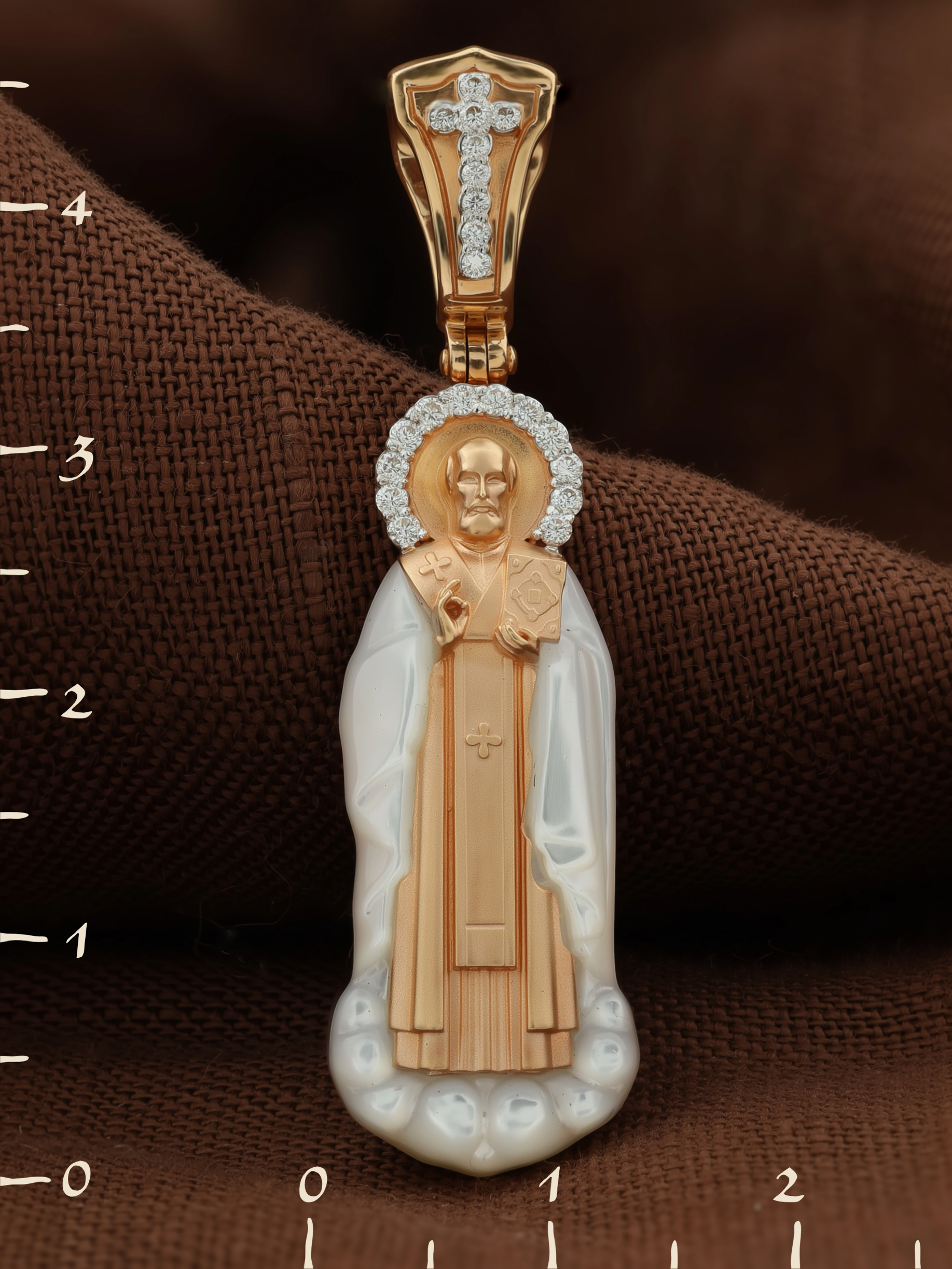 Образок из золота c бриллиантами и перламутром