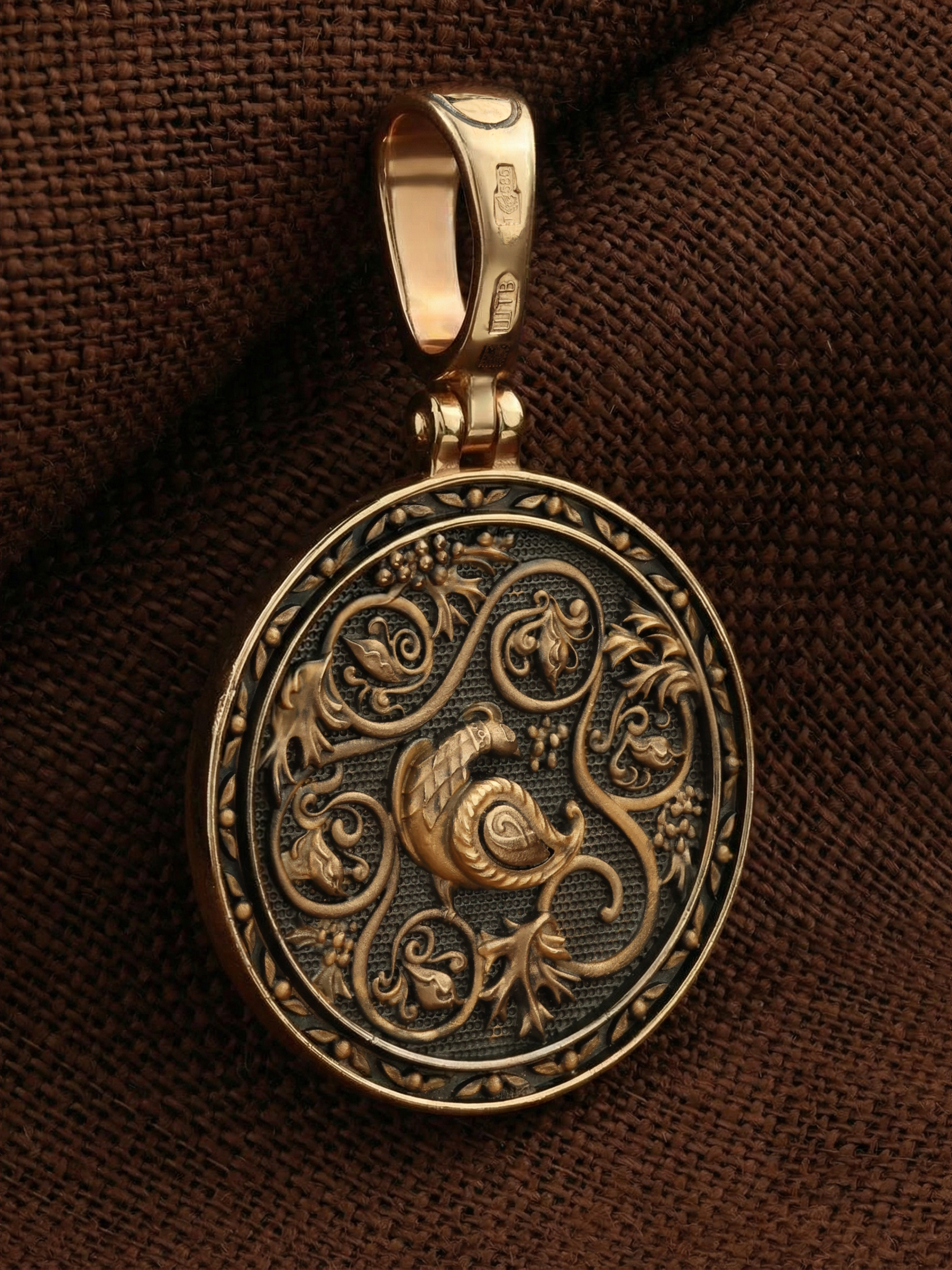 Оборот образка украшают растительные побеги, на которых сидят птицы. Это аллегория человеческих душ, которые населяют райский сад. Подобный символический образ появился в первые века христианства и на протяжении веков остается одним из самых распространенных орнаментальных мотивов Церкви.