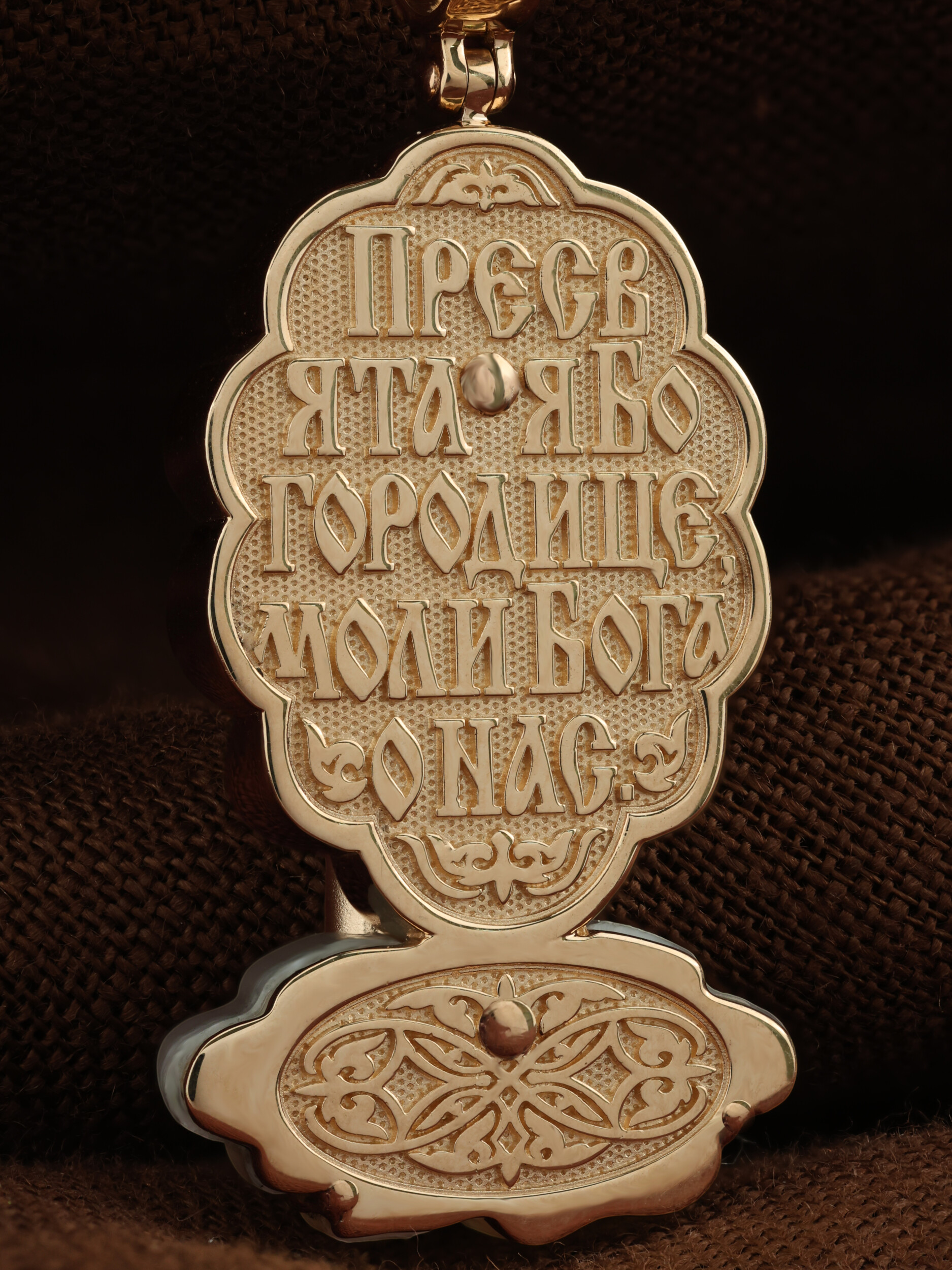 На оборотной стороне образка помещена молитва: «Пресвятая Богородице, моли Бога о нас.»