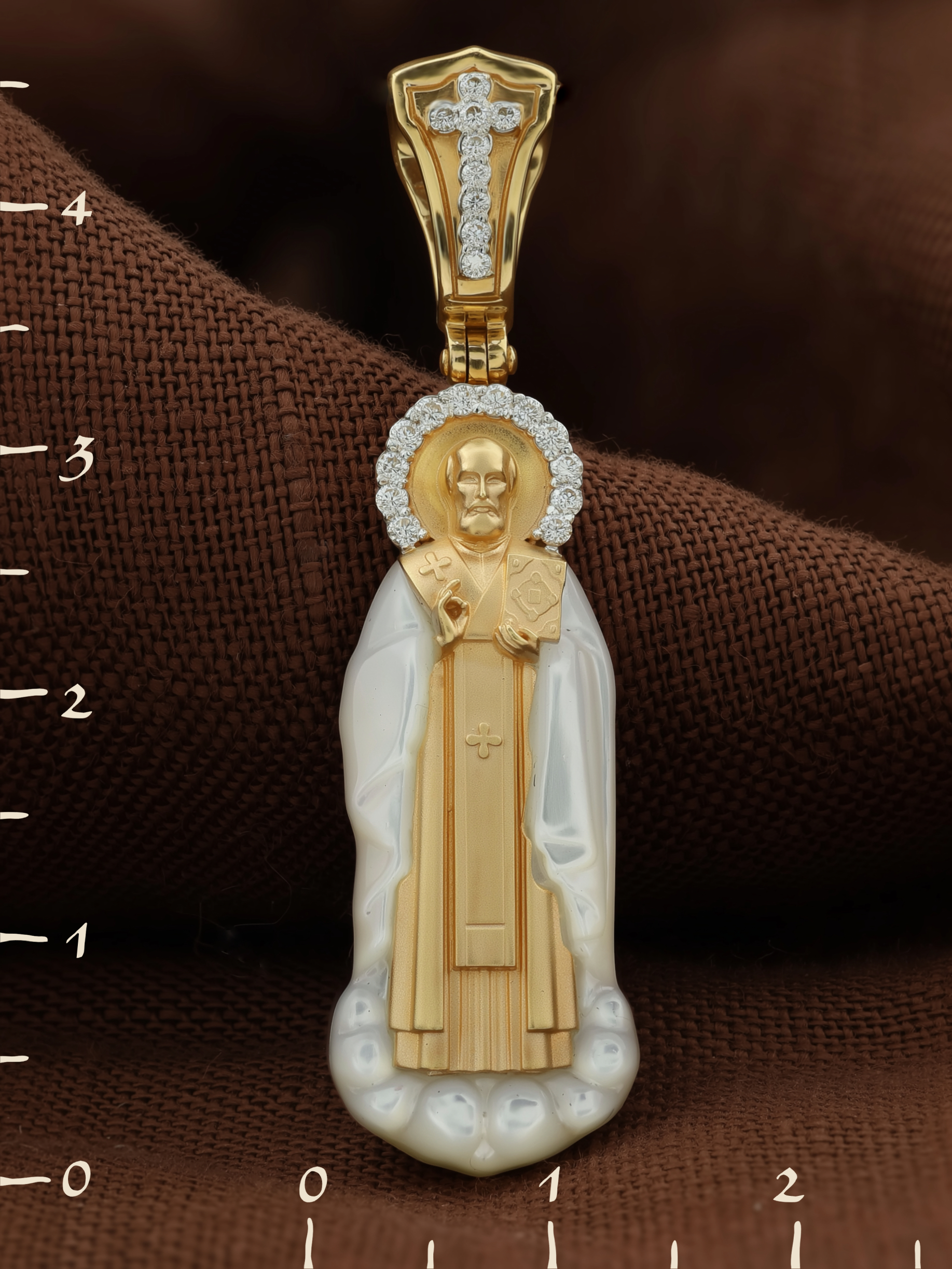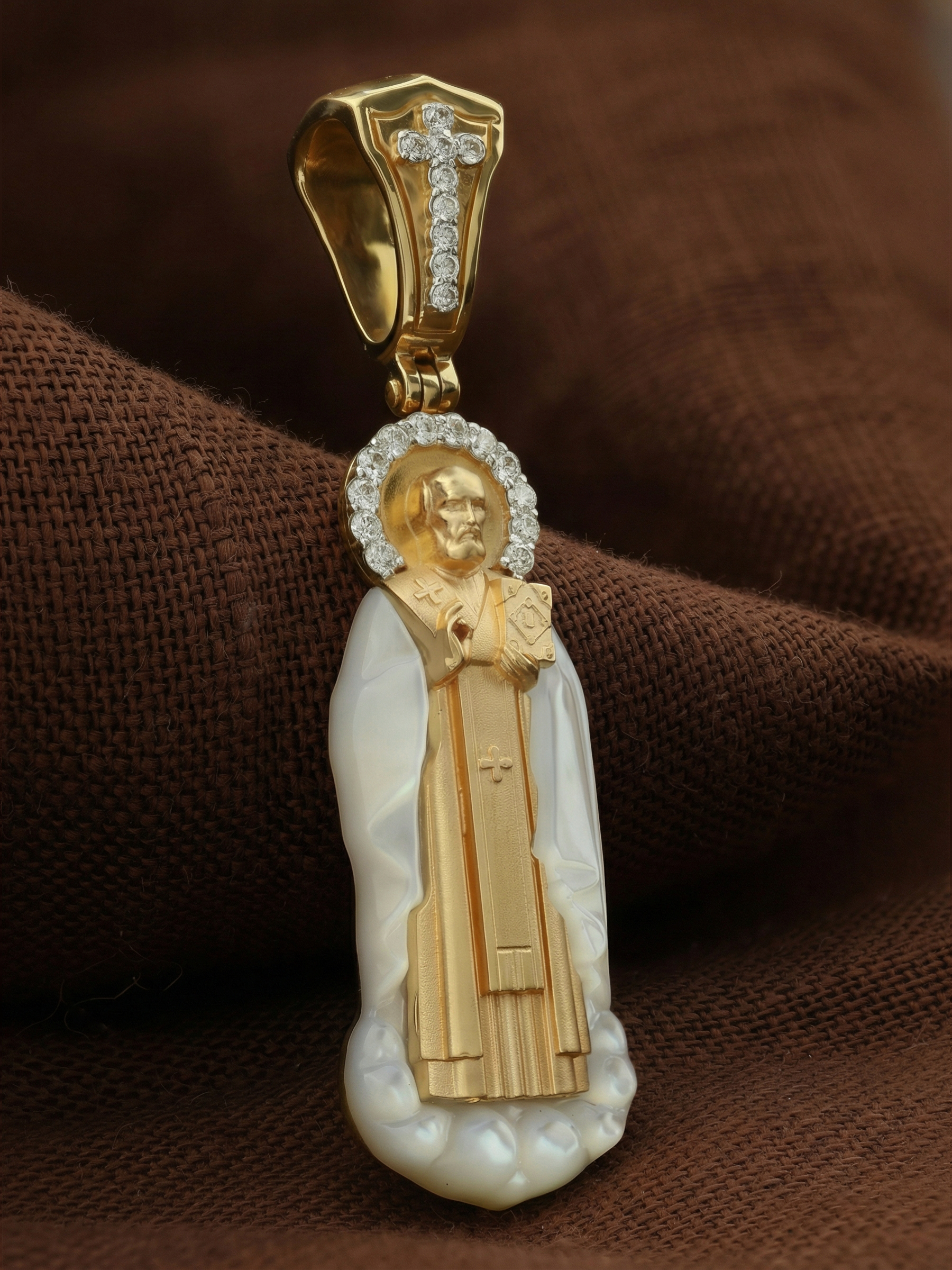 Образок из лимонного золота c бриллиантами и перламутром