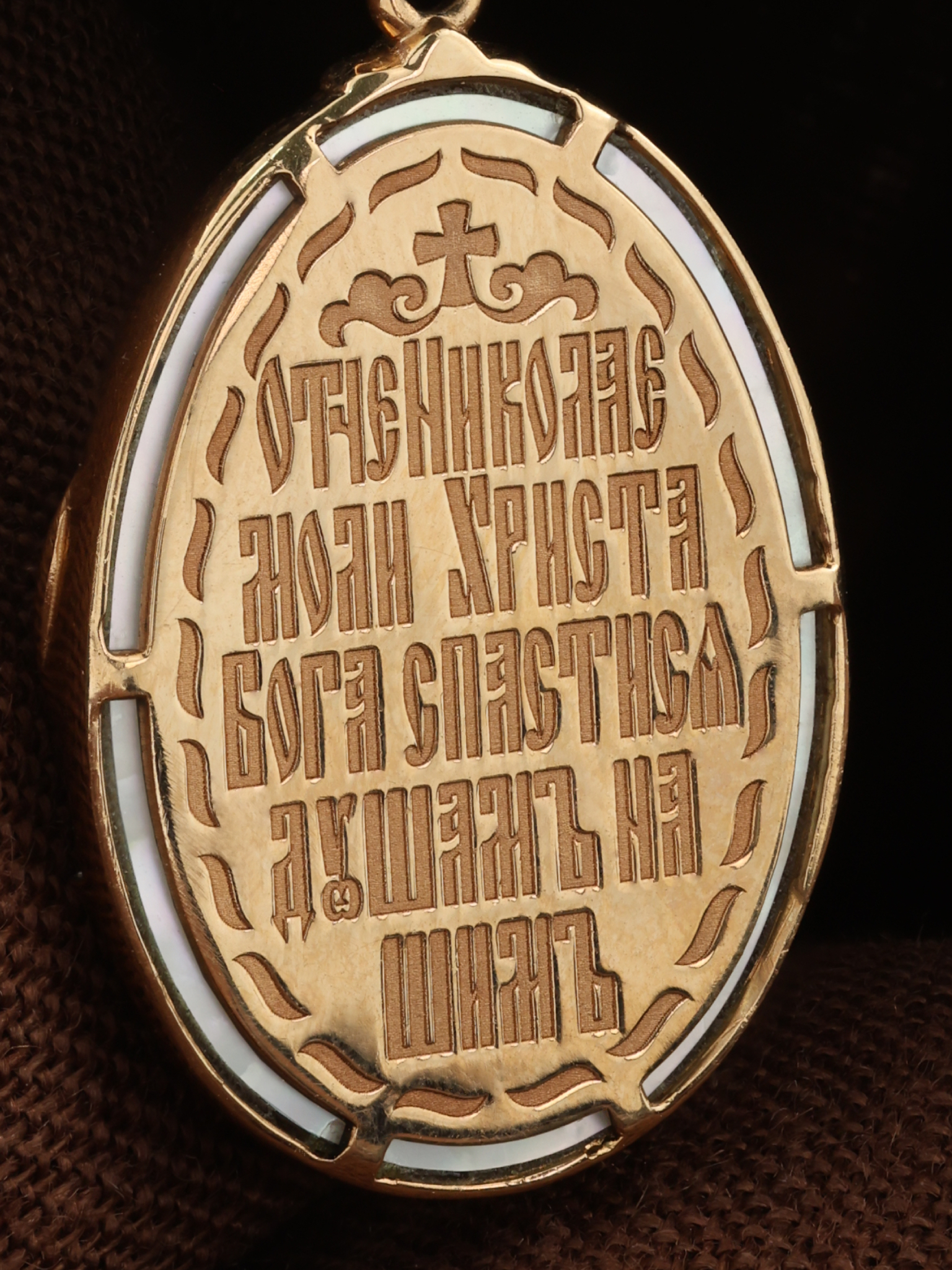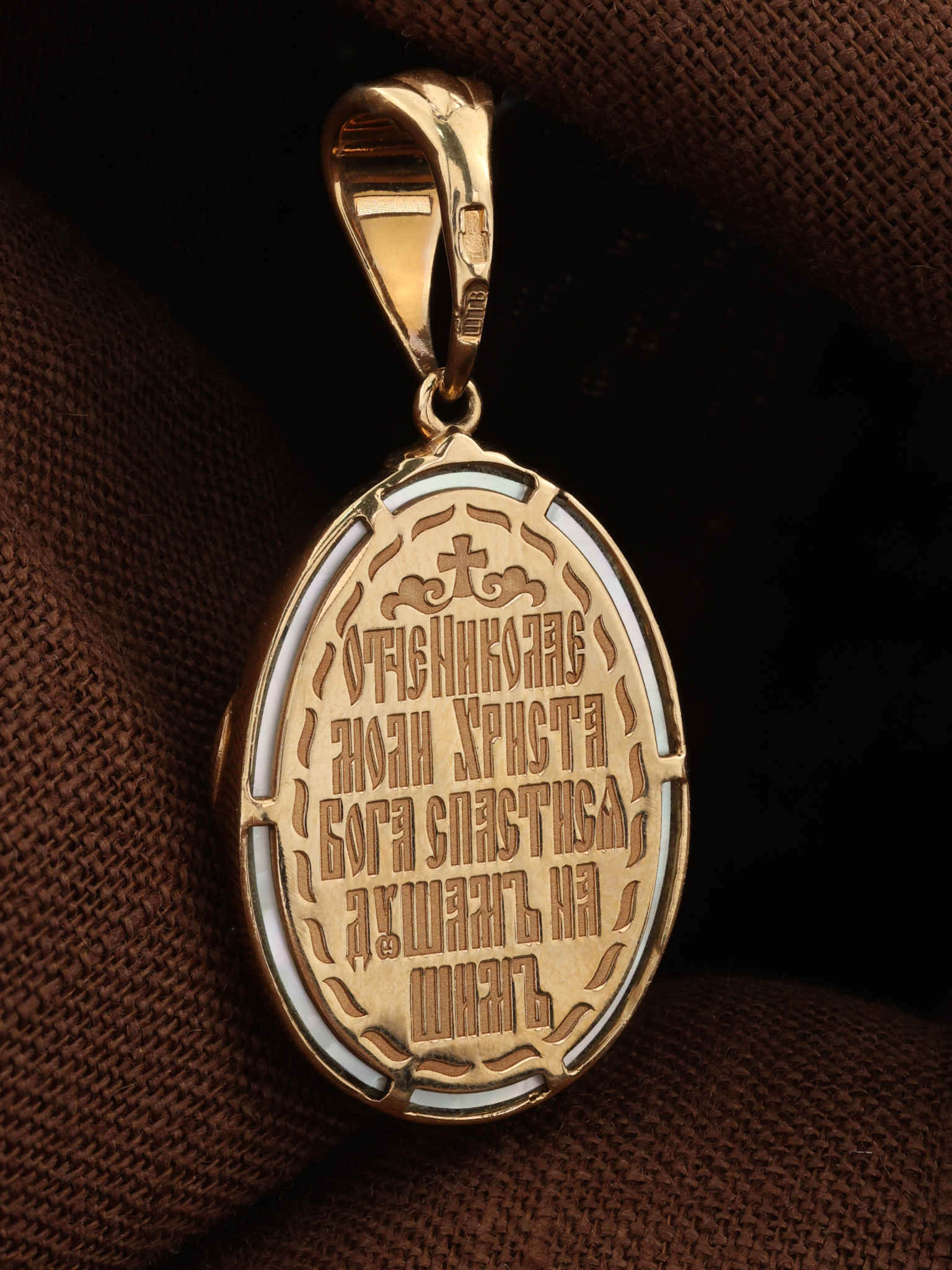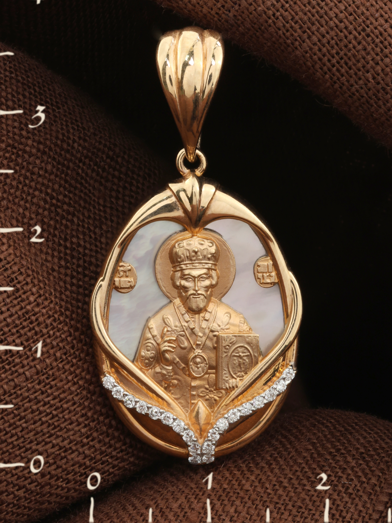Образок из золота c бриллиантами и перламутром