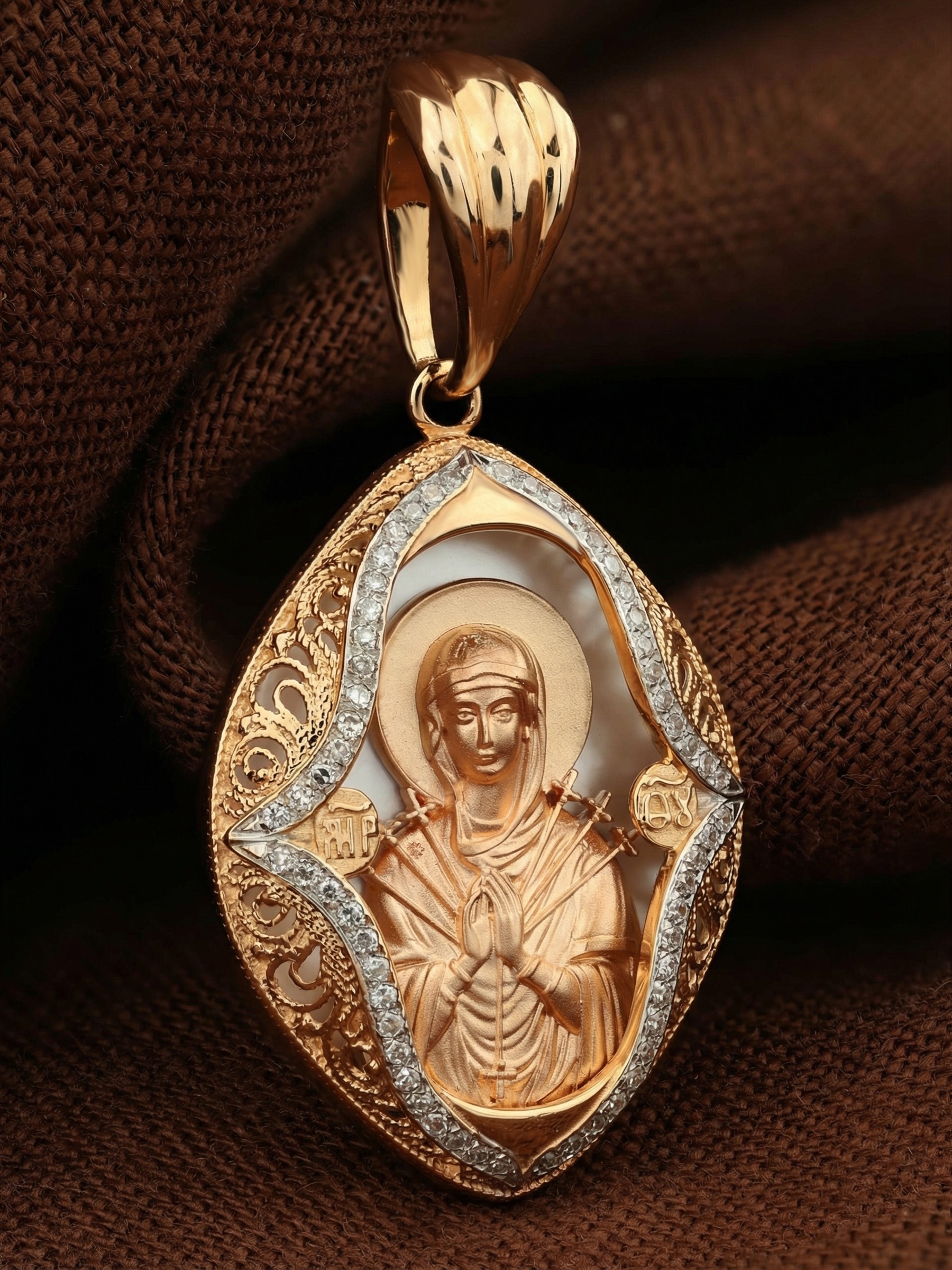 Образок из золота c бриллиантами и перламутром