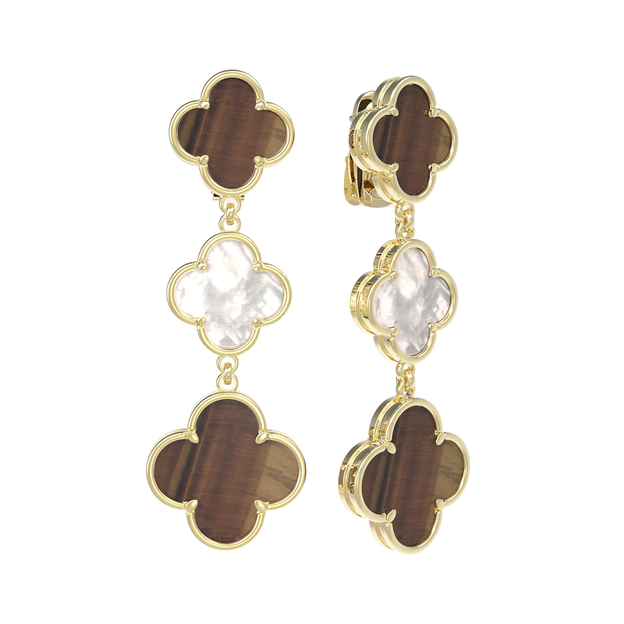 Серьги из лимонного золота c тигровым глазом и перламутром