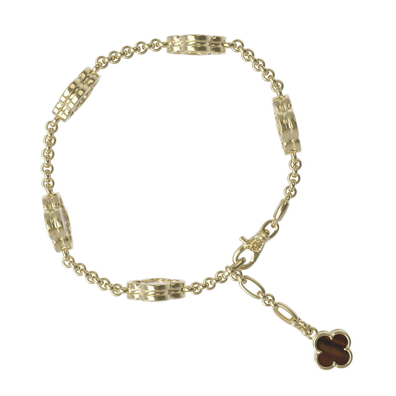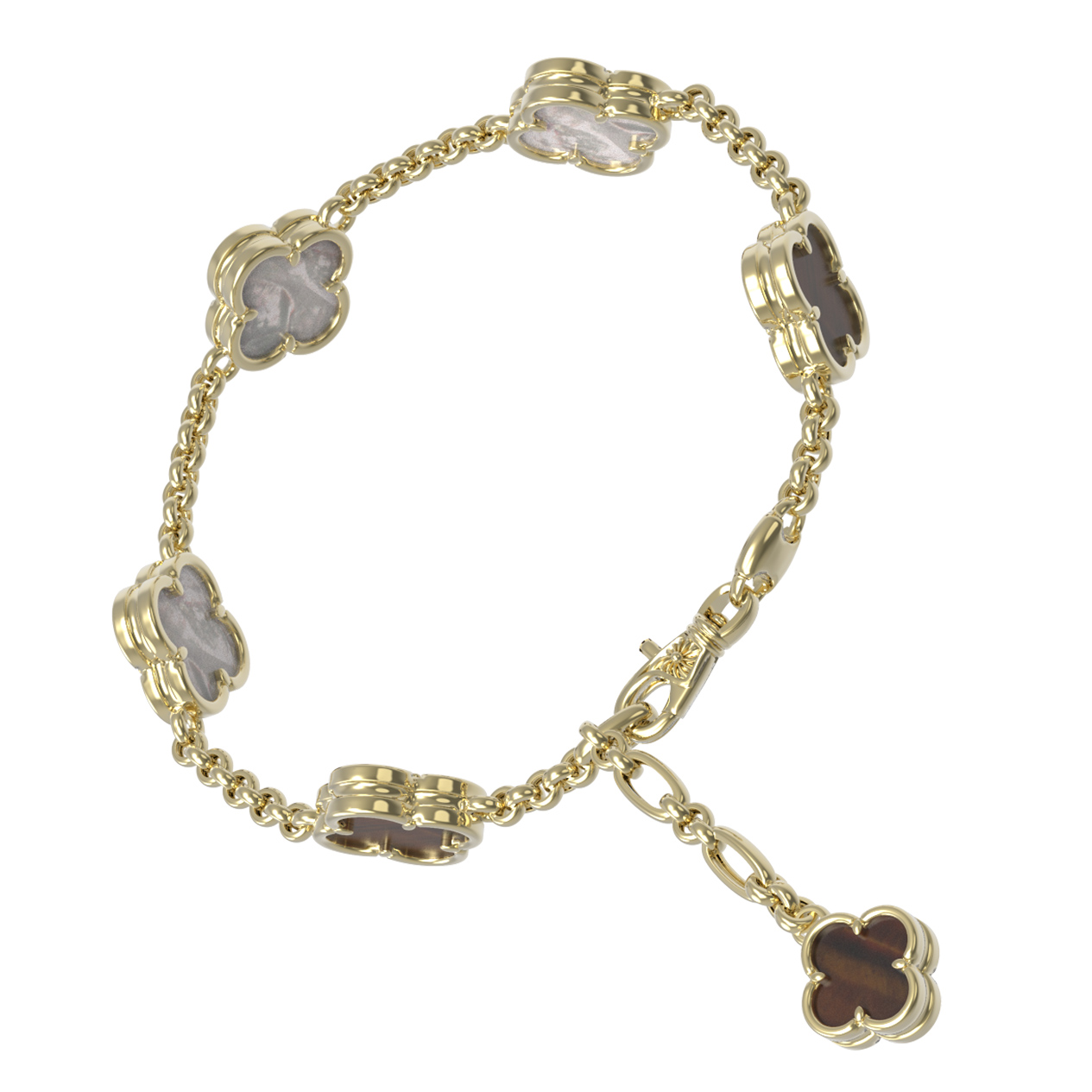 Браслет из лимонного золота c тигровым глазом и перламутром
