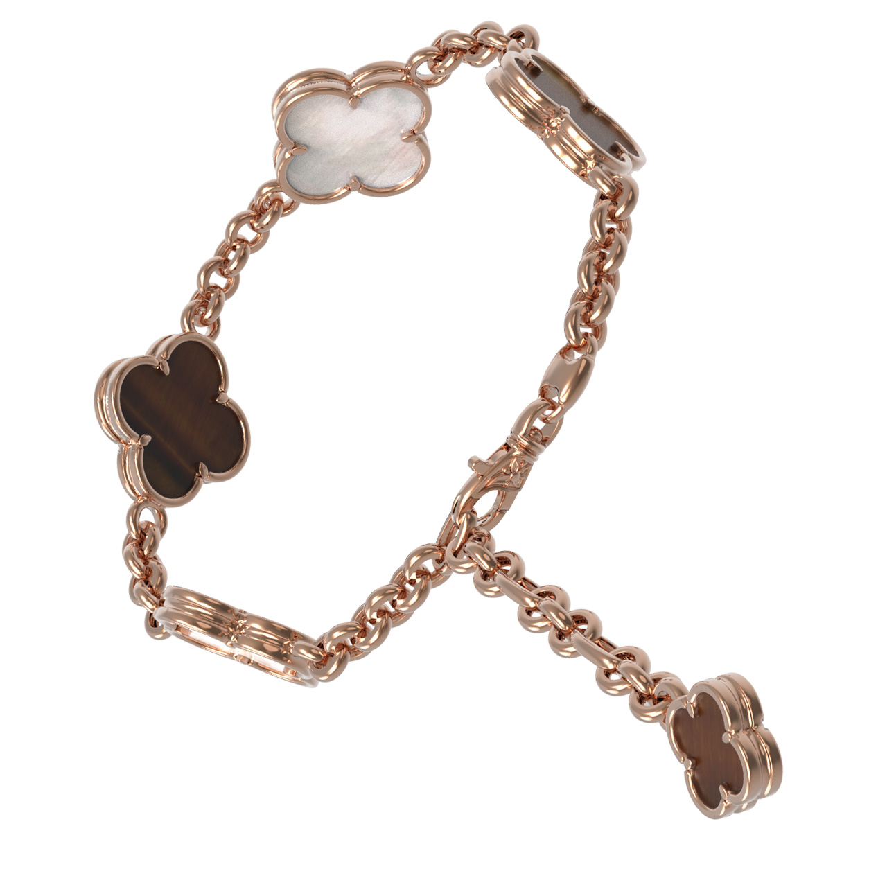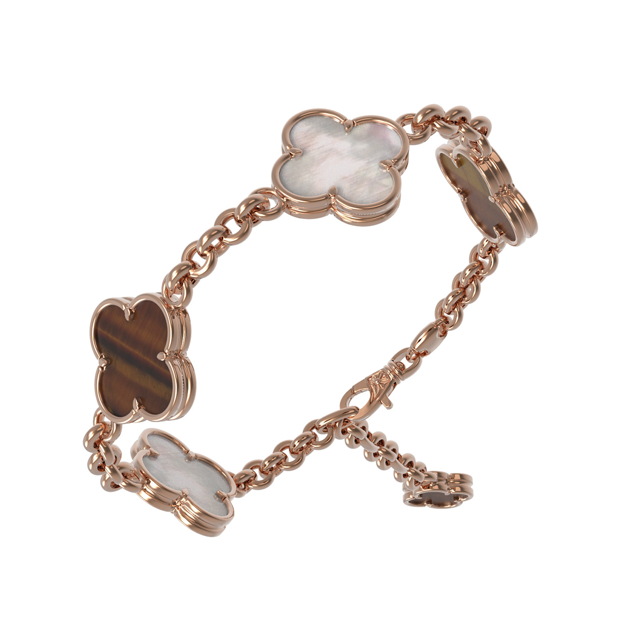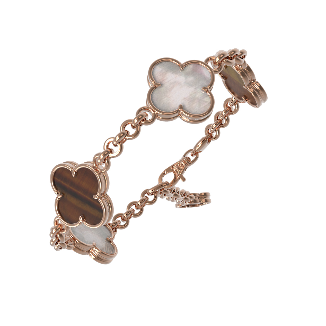 Браслет из золота c тигровым глазом и перламутром
