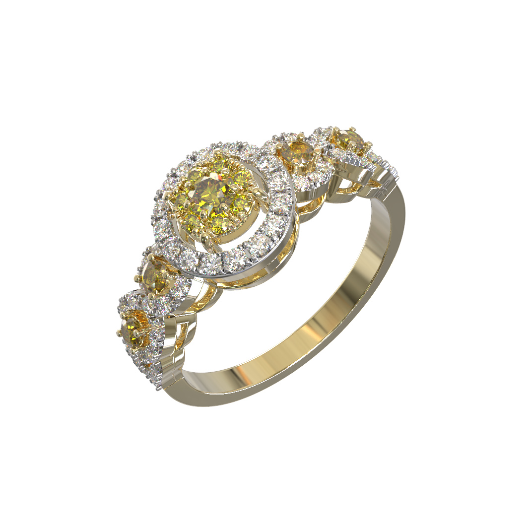 Кольцо из лимонного золота c бриллиантами и сапфиром