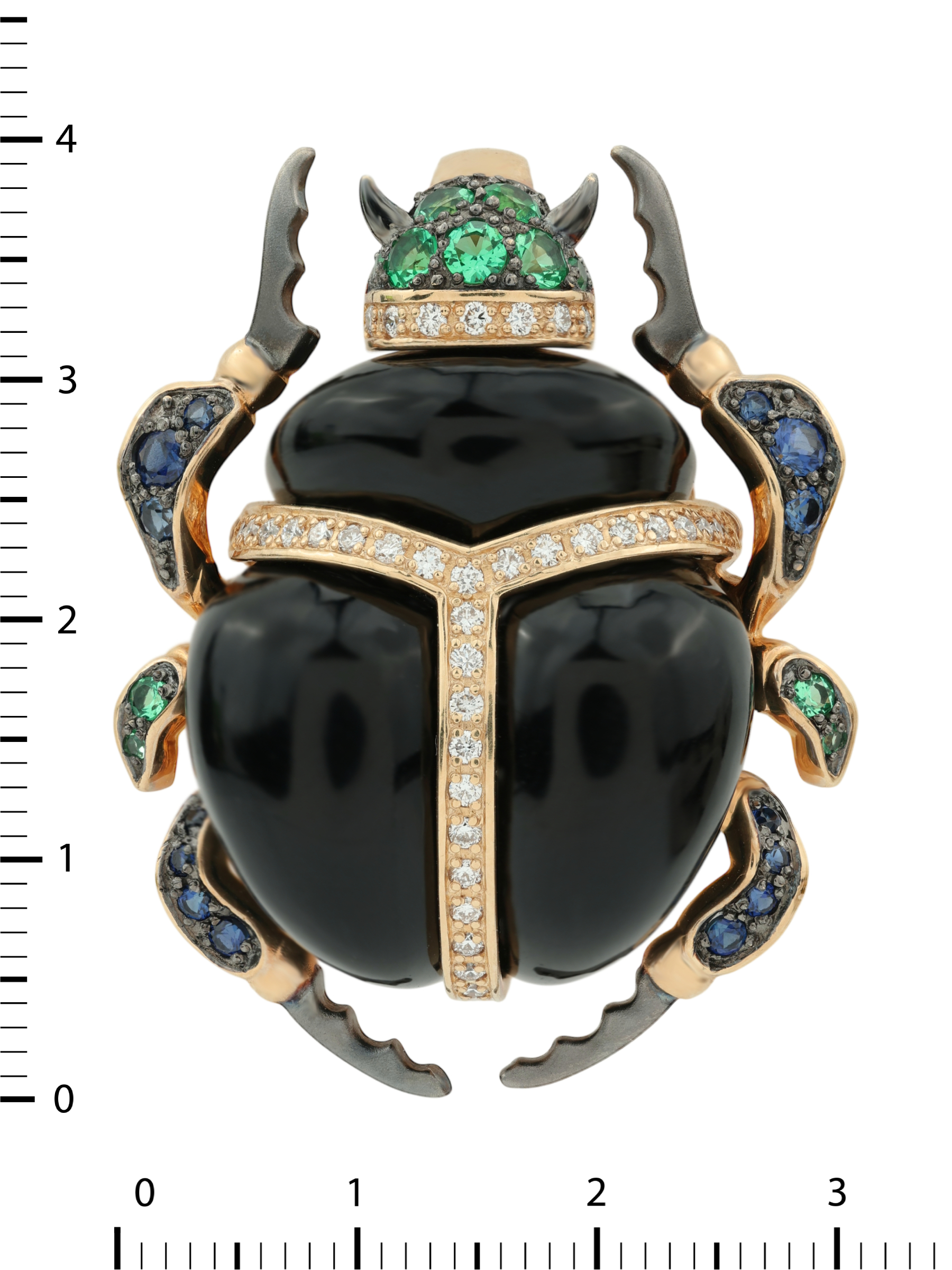 Подвеска из золота c бриллиантами, сапфиром, изумрудом и ониксом