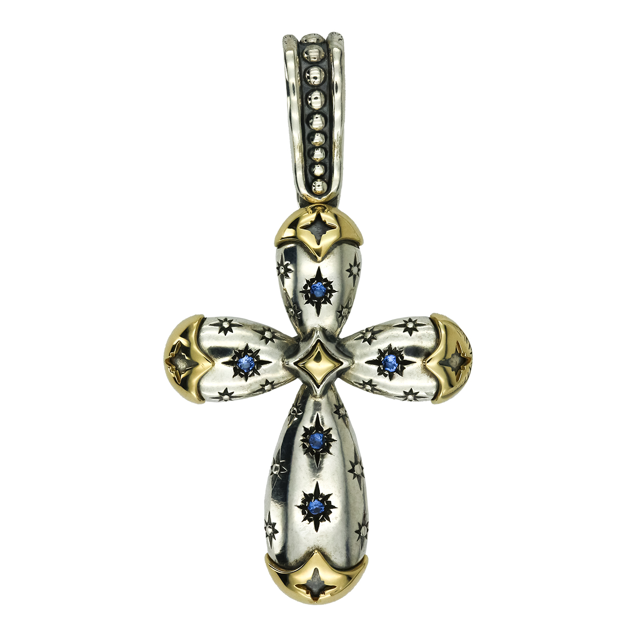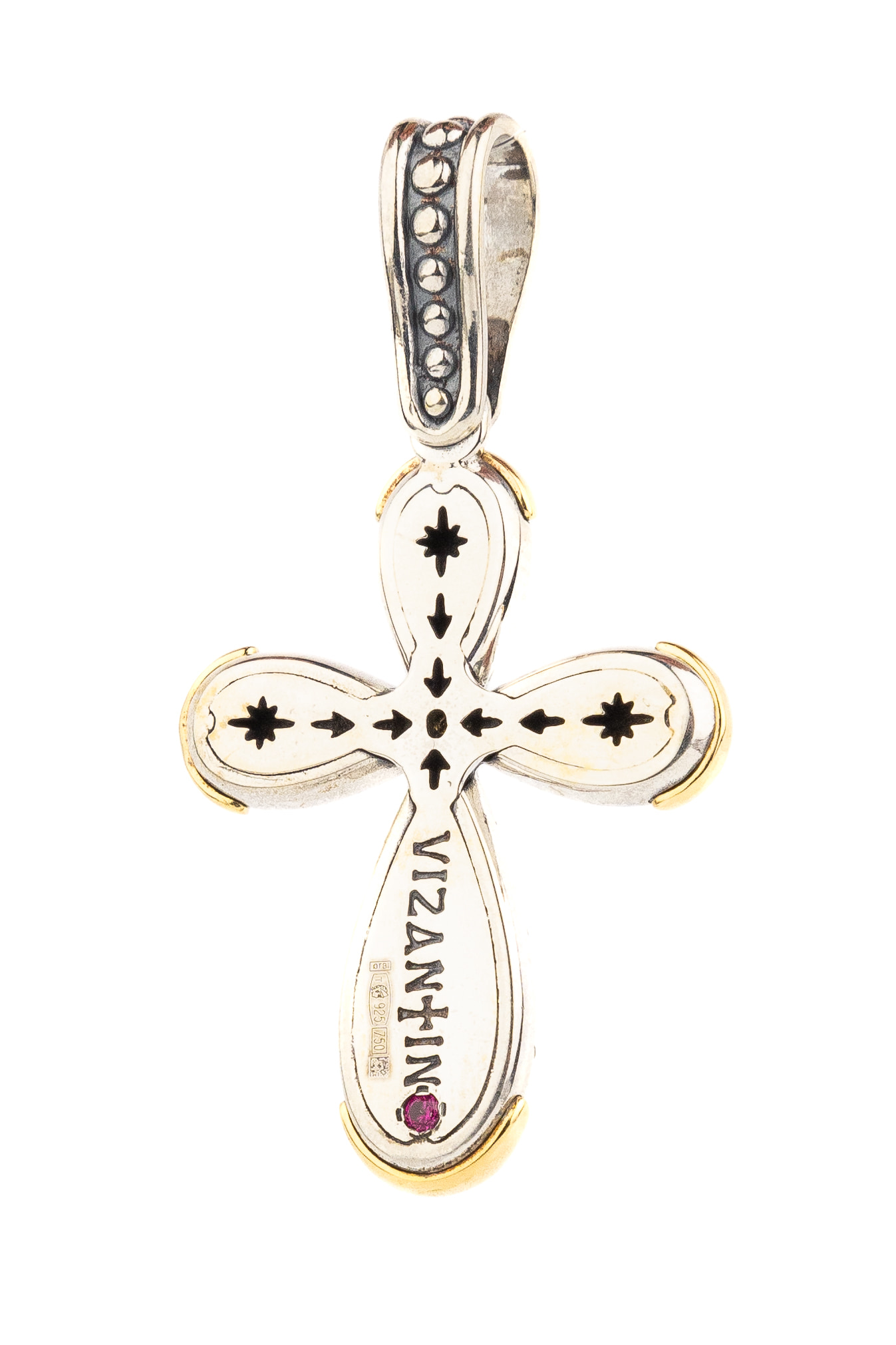 Крест из серебра и золота c фианитом и рубином