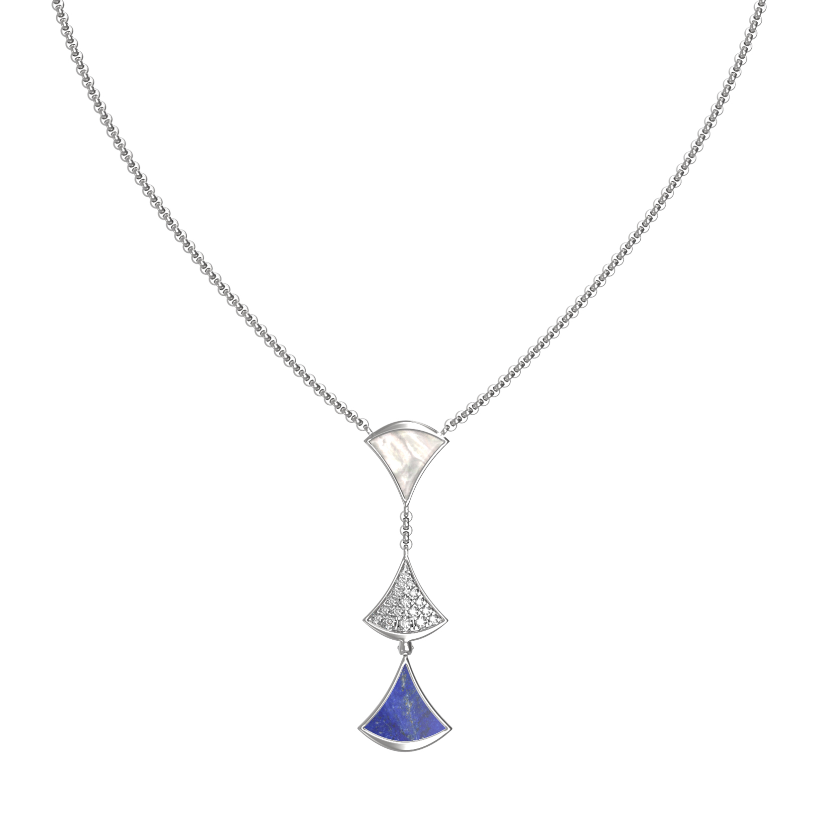 Колье из белого золота c бриллиантами, лазуритом и перламутром