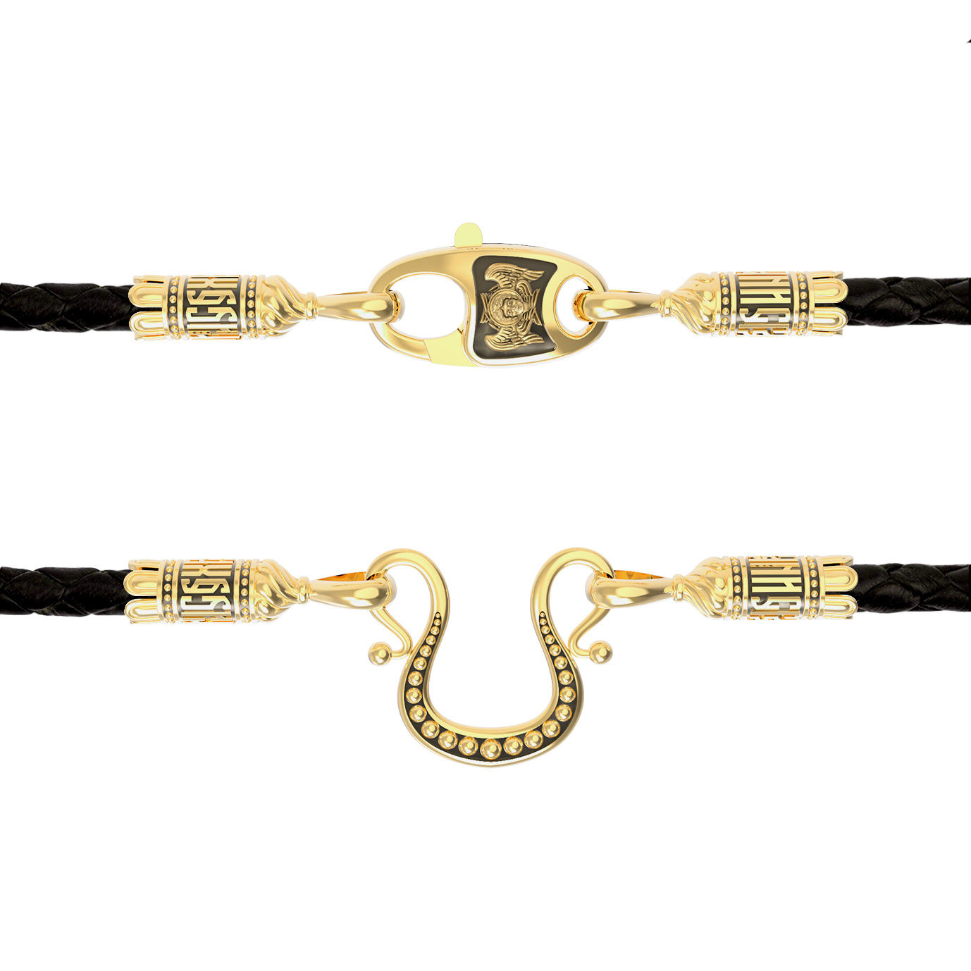 Шнурок кожаный из лимонного золота c кожаным шнурком