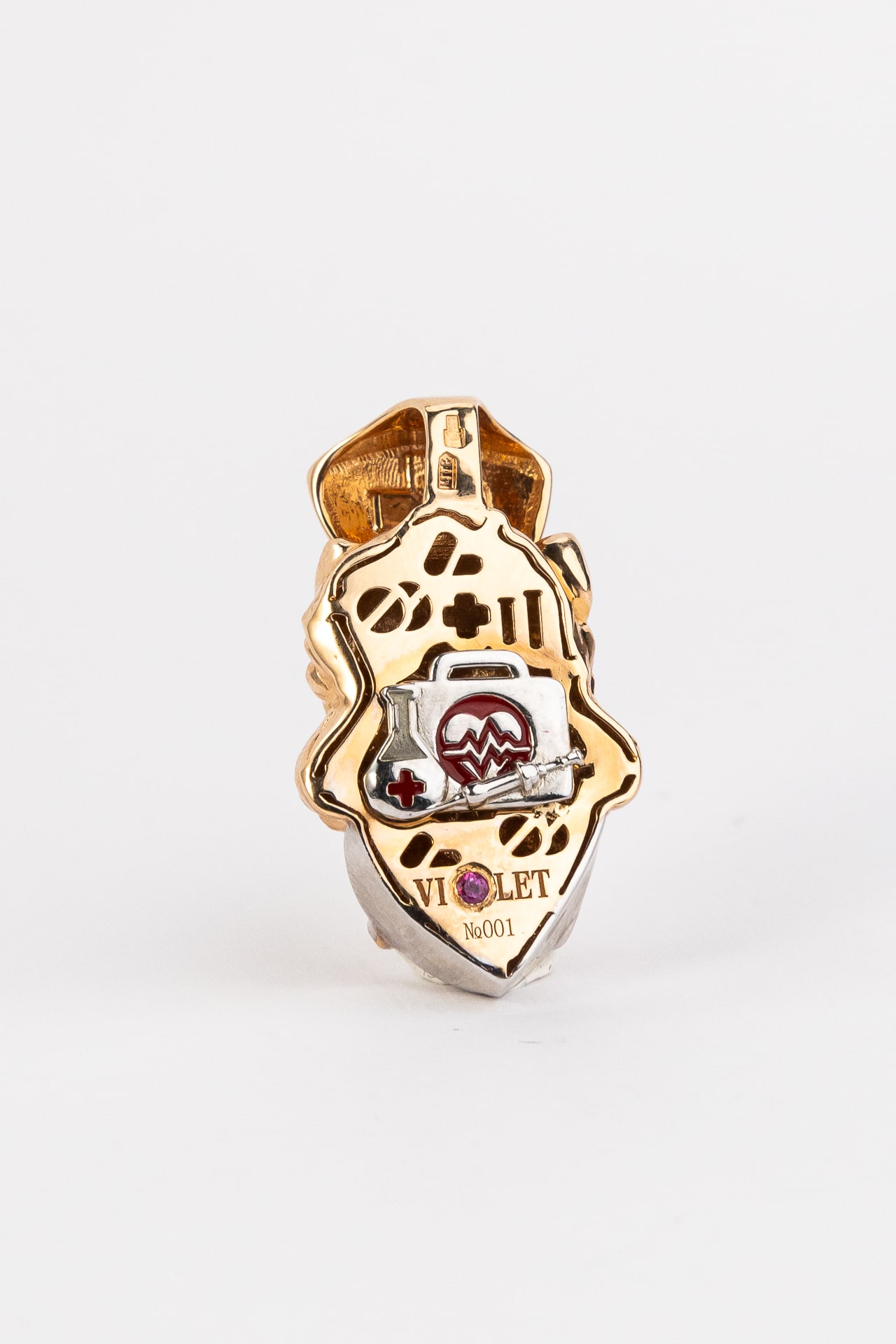 Подвеска из золота c эмаль, бриллиантами и рубином