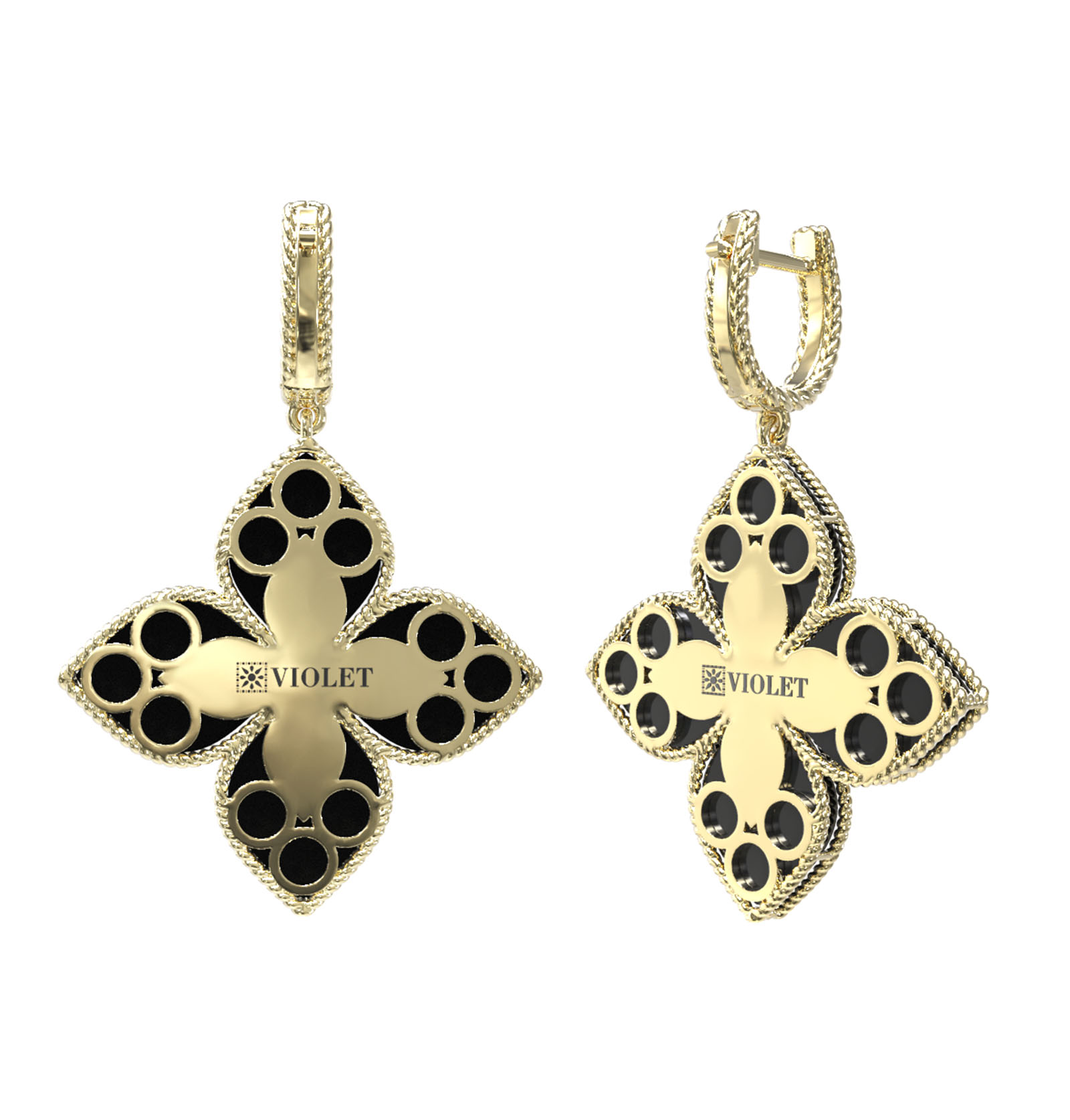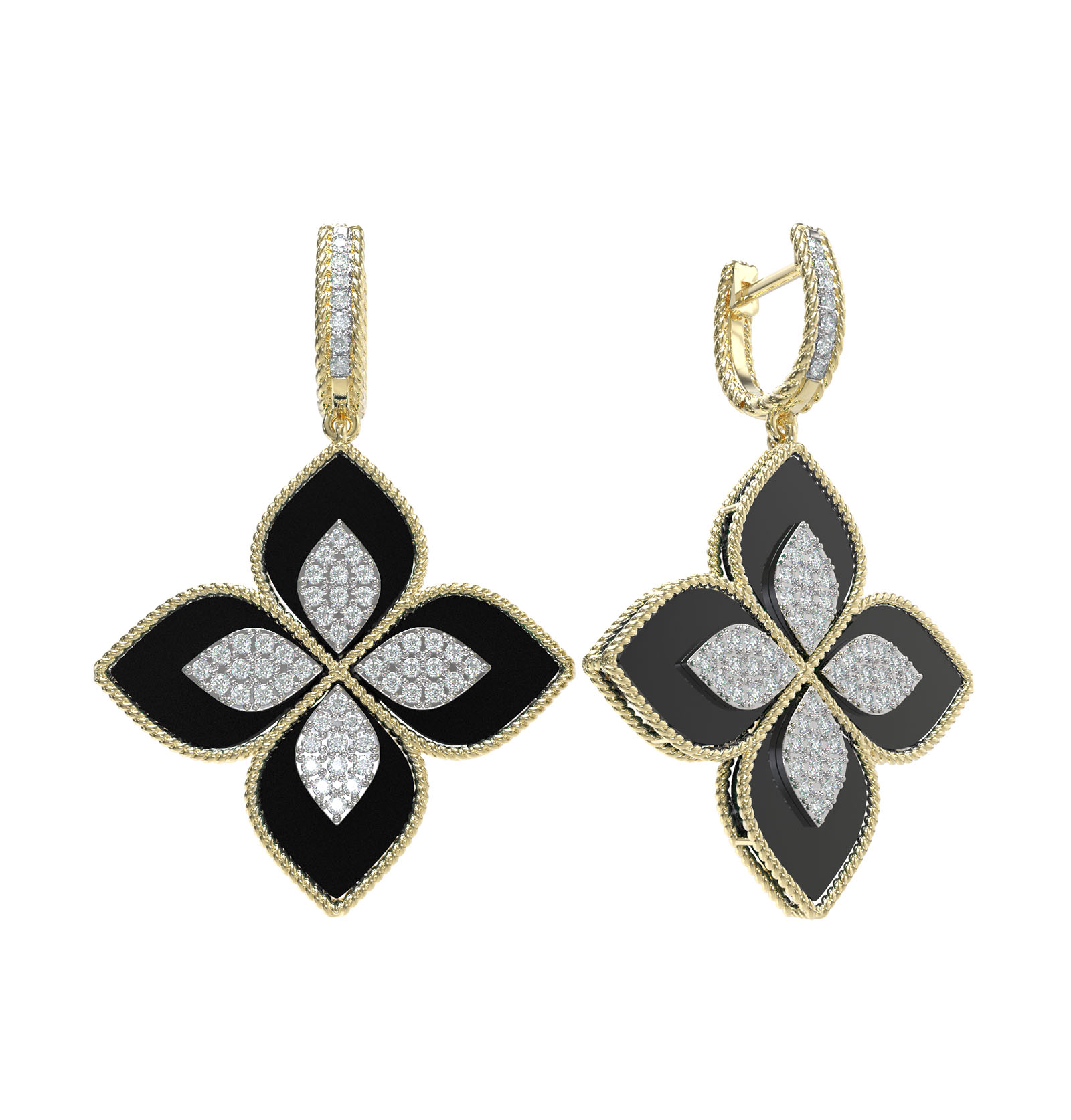 Серьги из лимонного золота c бриллиантами и ониксом