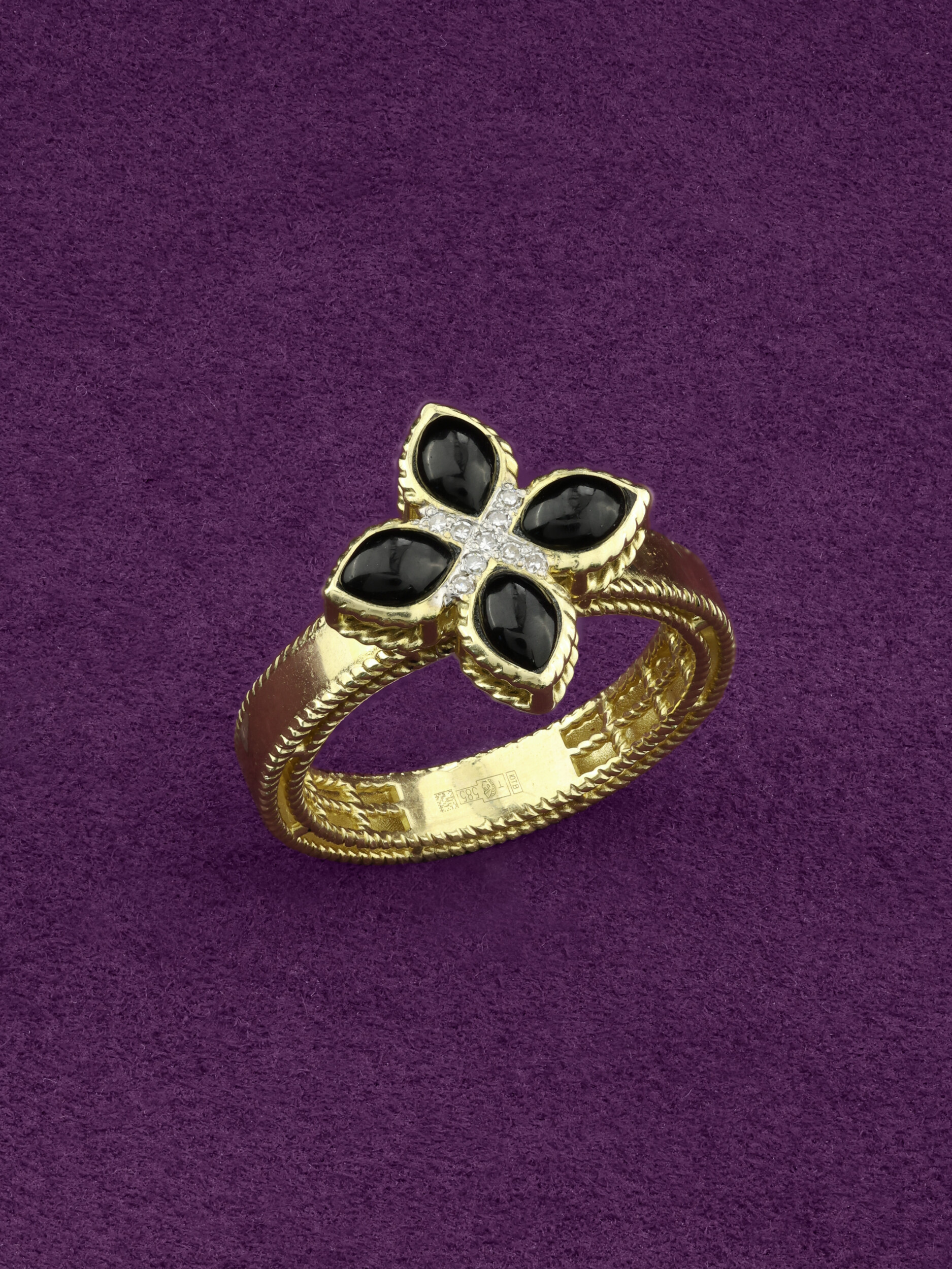 Кольцо из лимонного золота c бриллиантами и ониксом