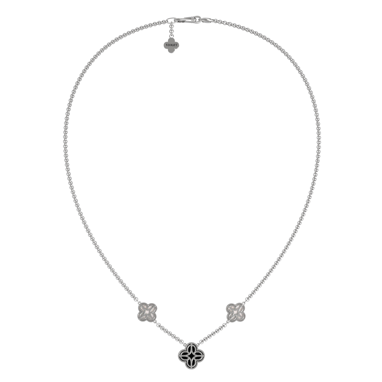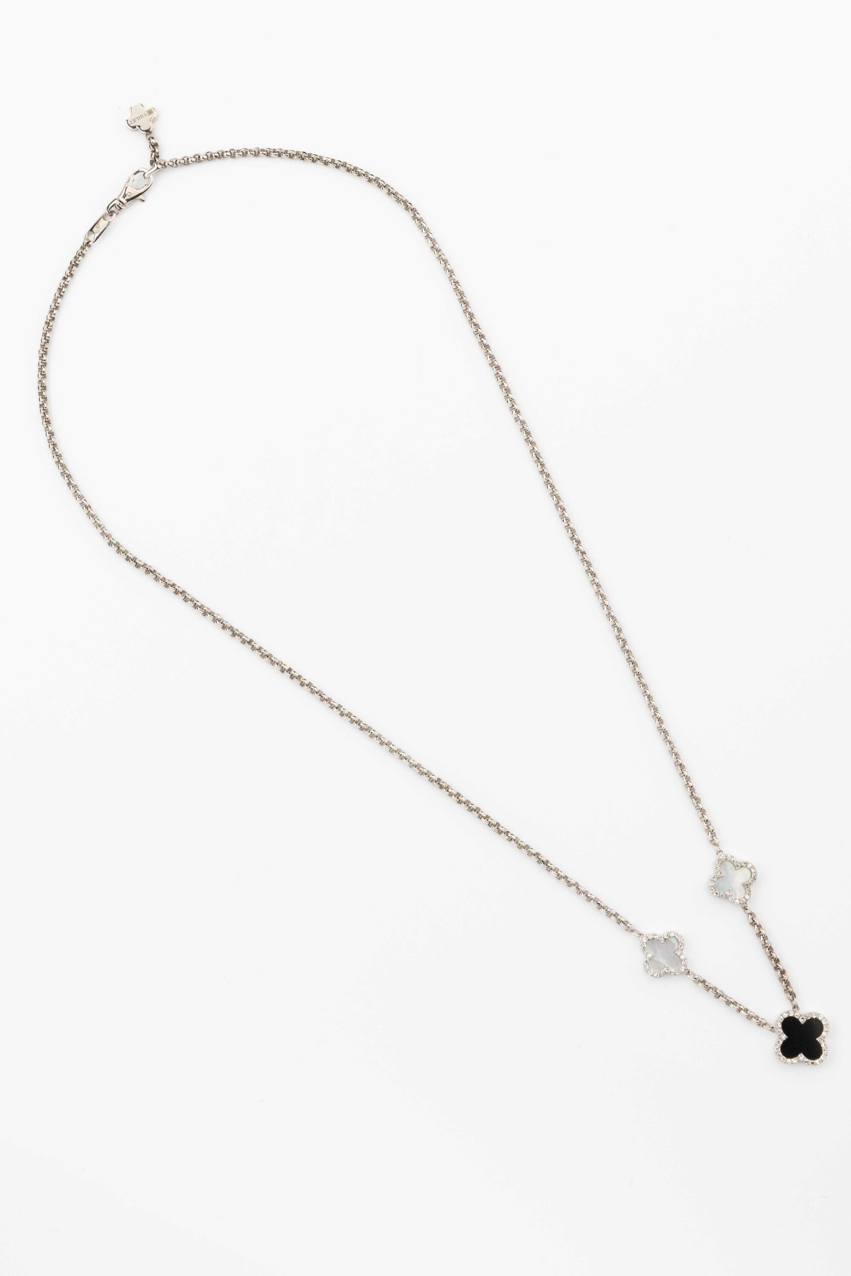 Колье из белого золота c бриллиантами, ониксом и перламутром