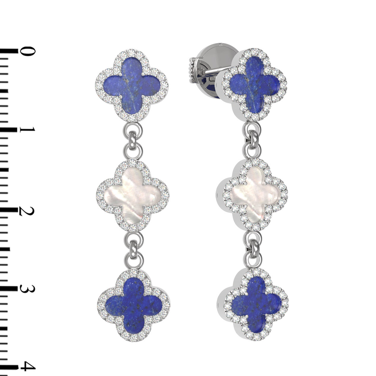 Серьги из белого золота c бриллиантами, лазуритом и перламутром