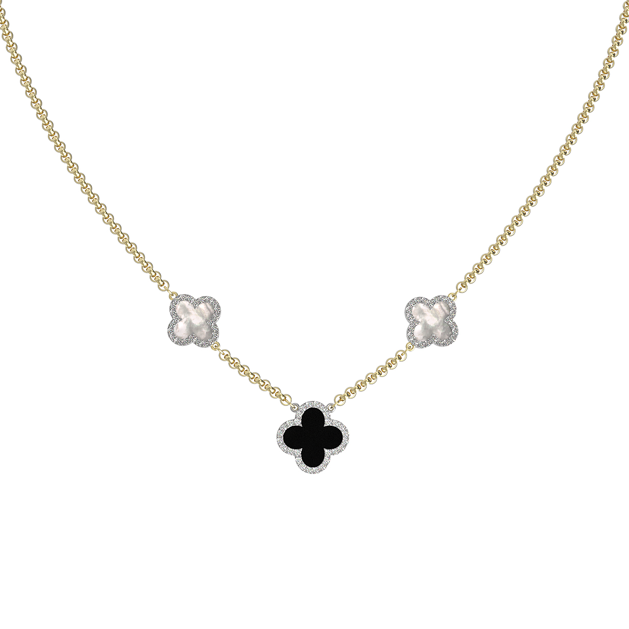 Колье из лимонного золота c бриллиантами, ониксом и перламутром
