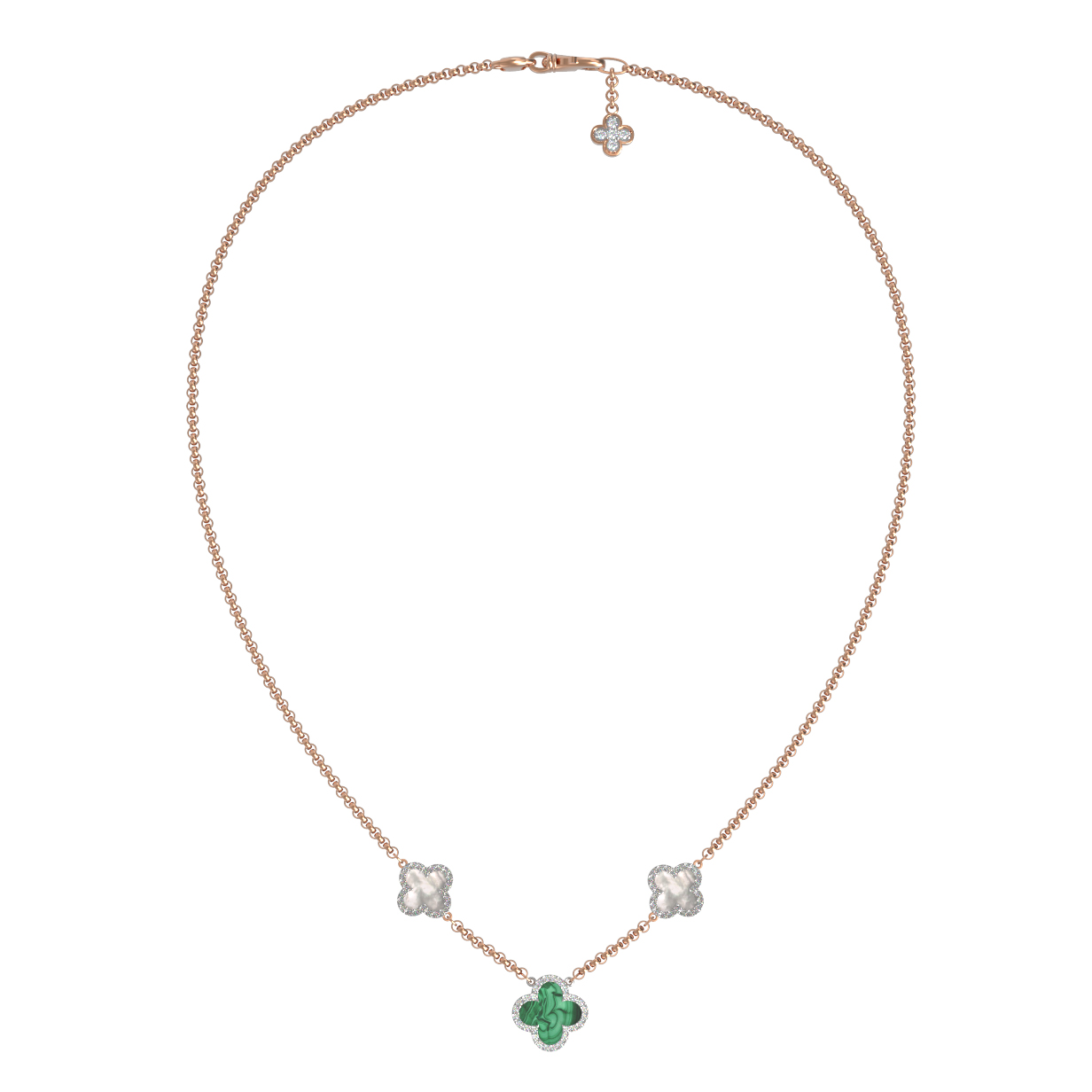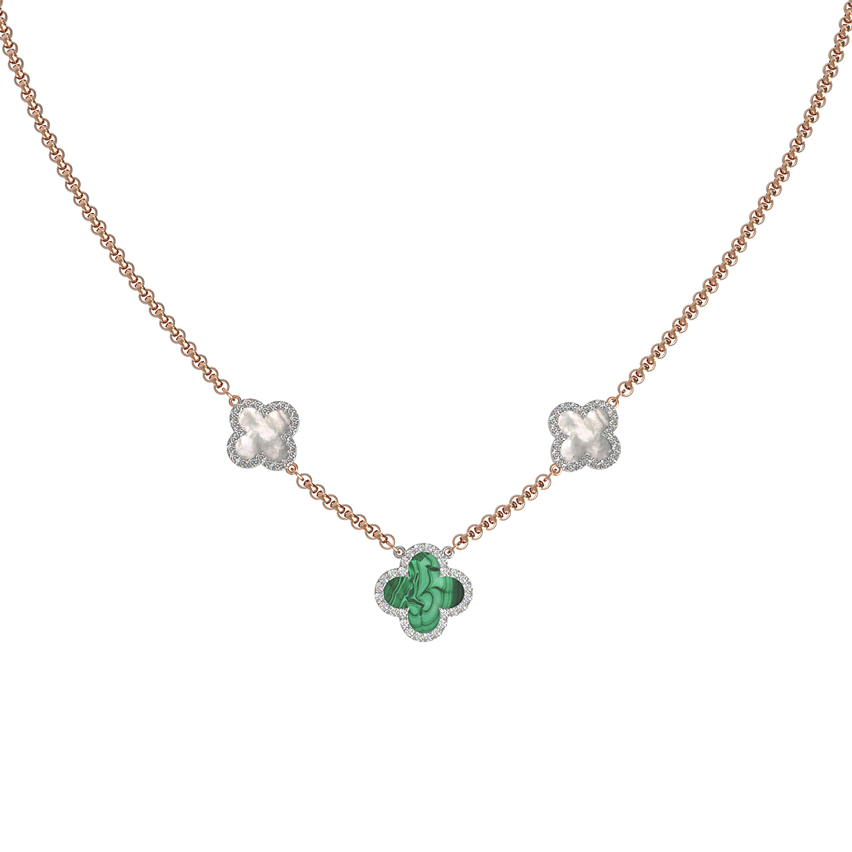 Колье из золота c бриллиантами, малахитом и перламутром