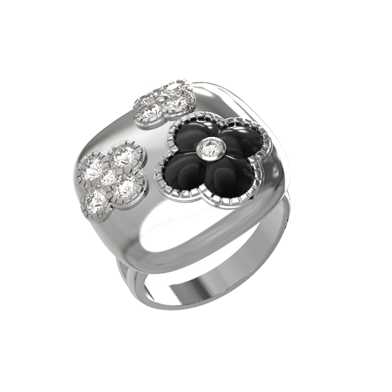 Кольцо из белого золота c бриллиантами и ониксом
