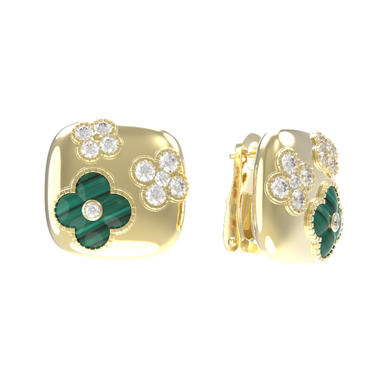 Серьги из лимонного золота c бриллиантами и малахитом
