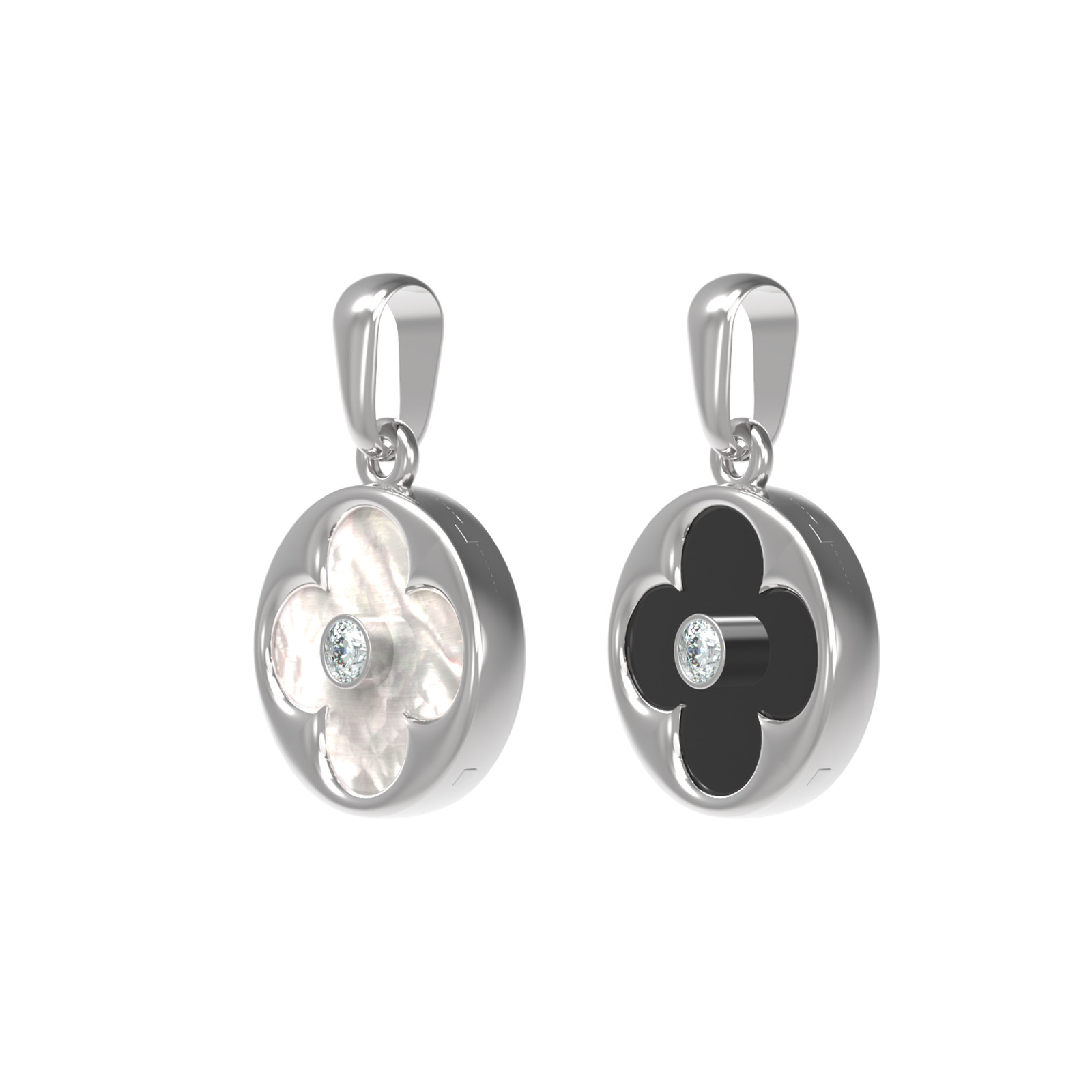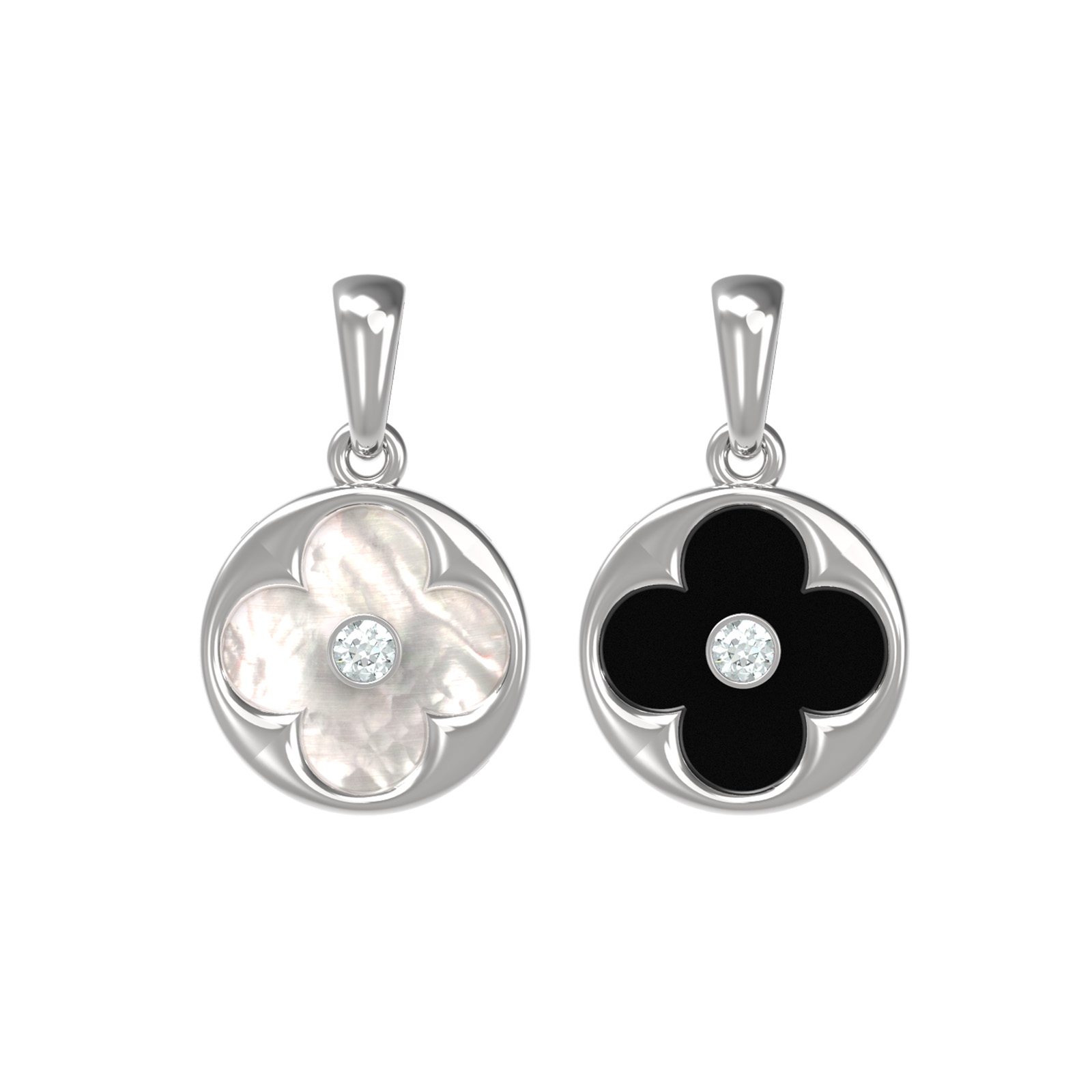 Подвеска из белого золота c бриллиантами, ониксом и перламутром