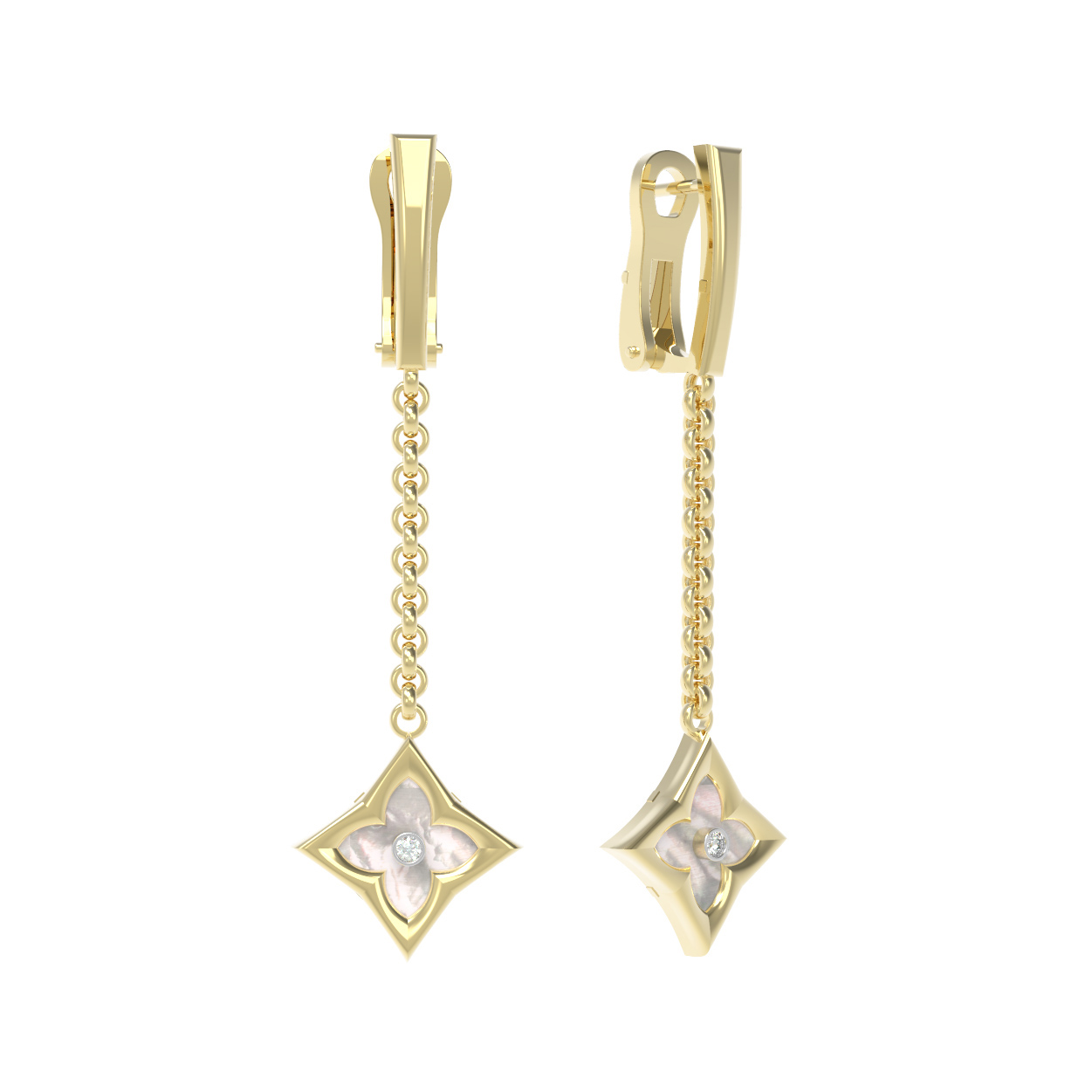 Серьги из лимонного золота c бриллиантами и перламутром