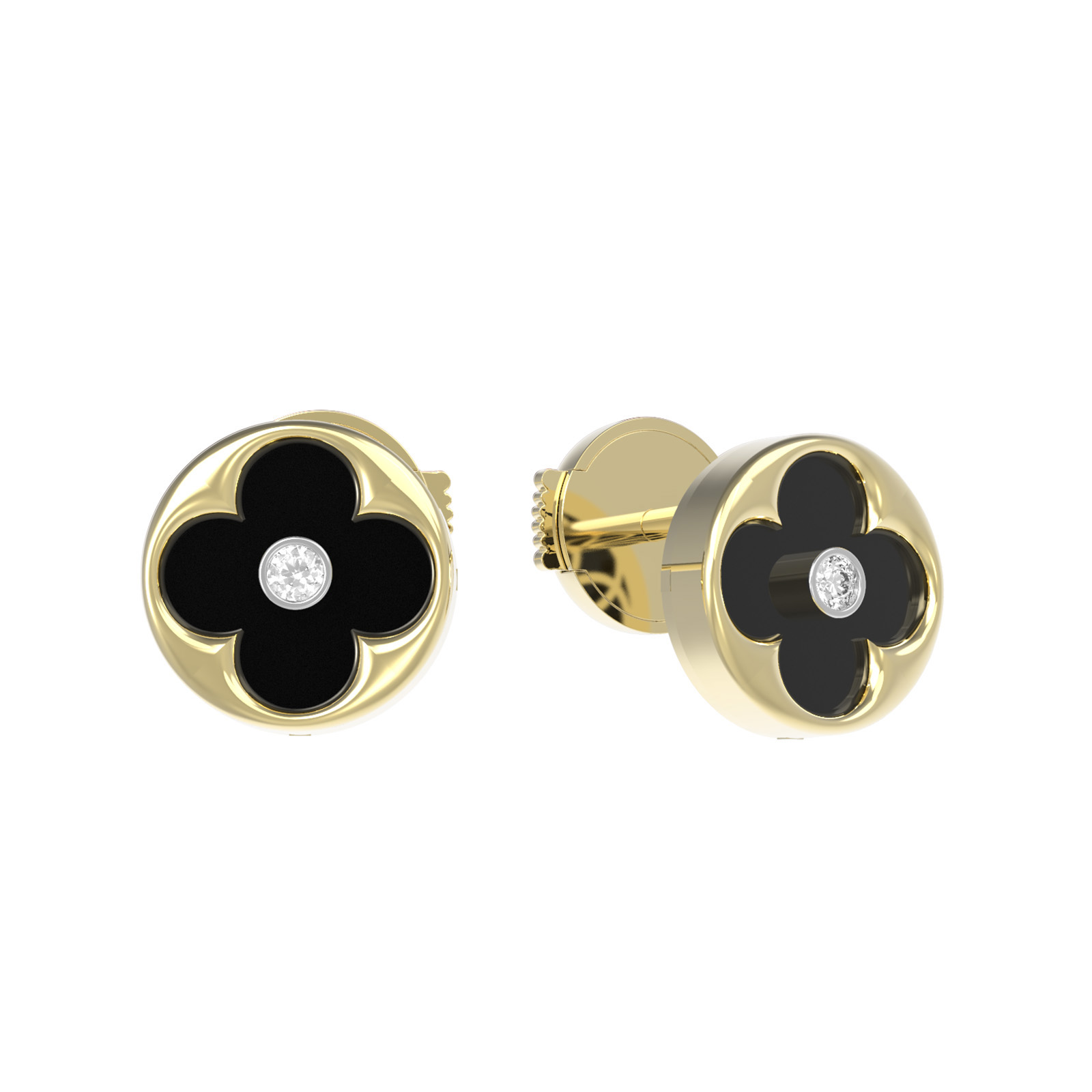 Серьги из лимонного золота c бриллиантами и ониксом