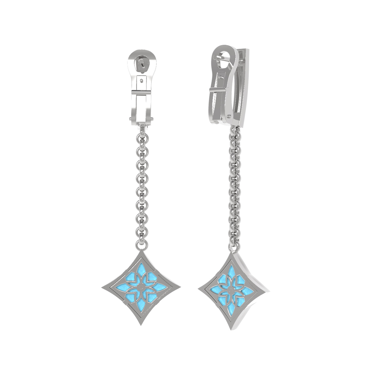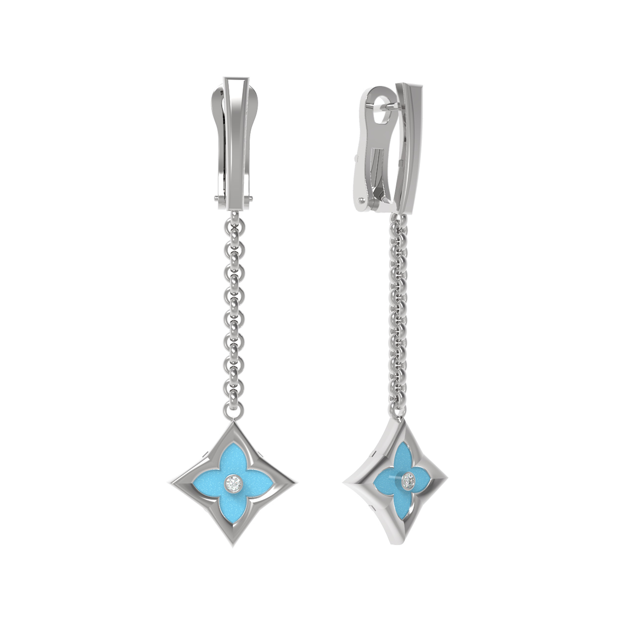 Серьги из белого золота c бриллиантами и бирюзой
