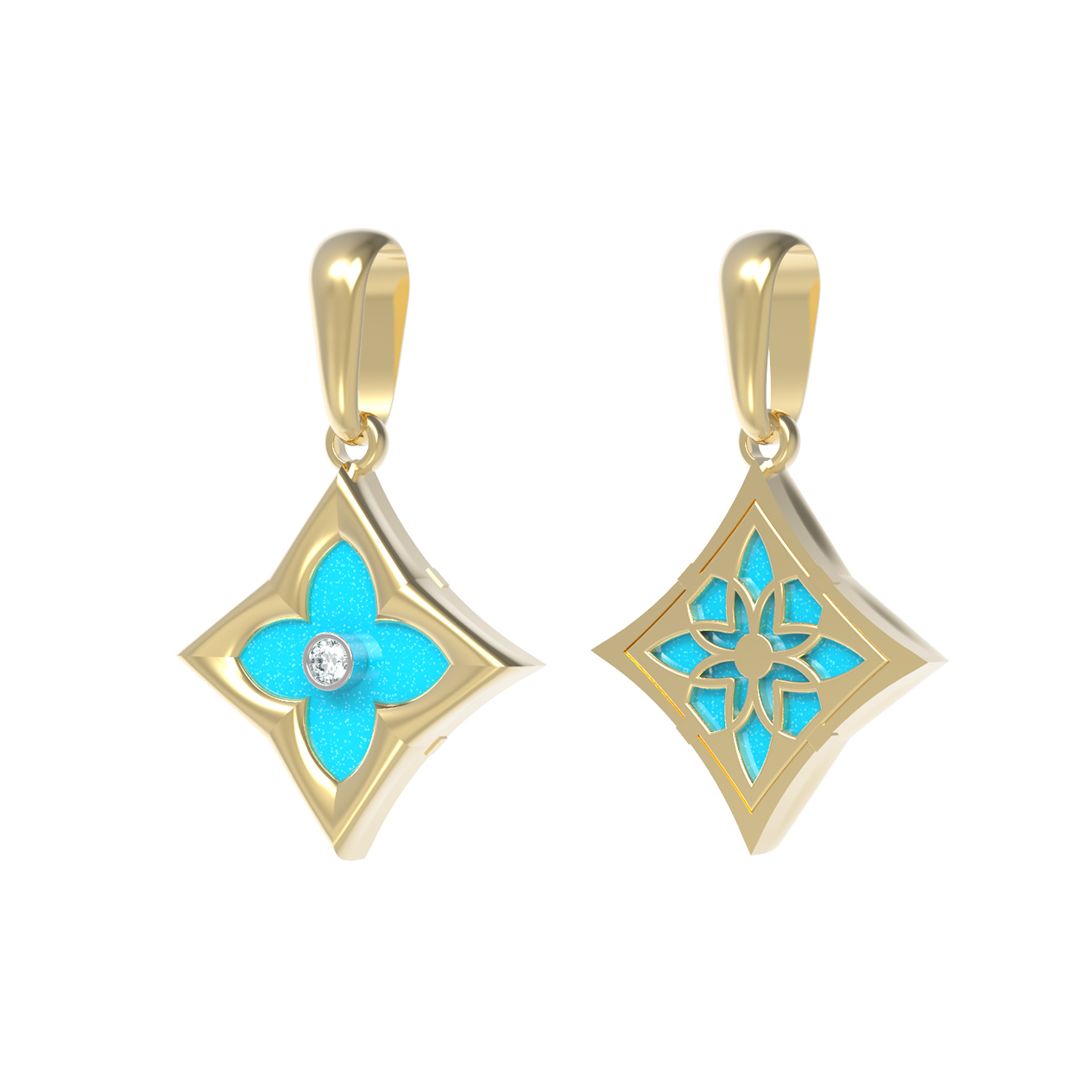 Подвеска из лимонного золота c бриллиантами и бирюзой