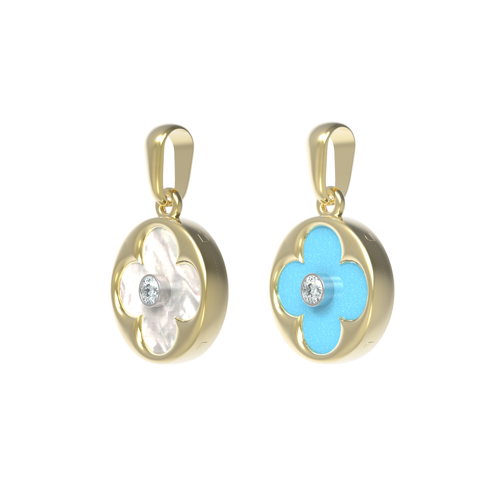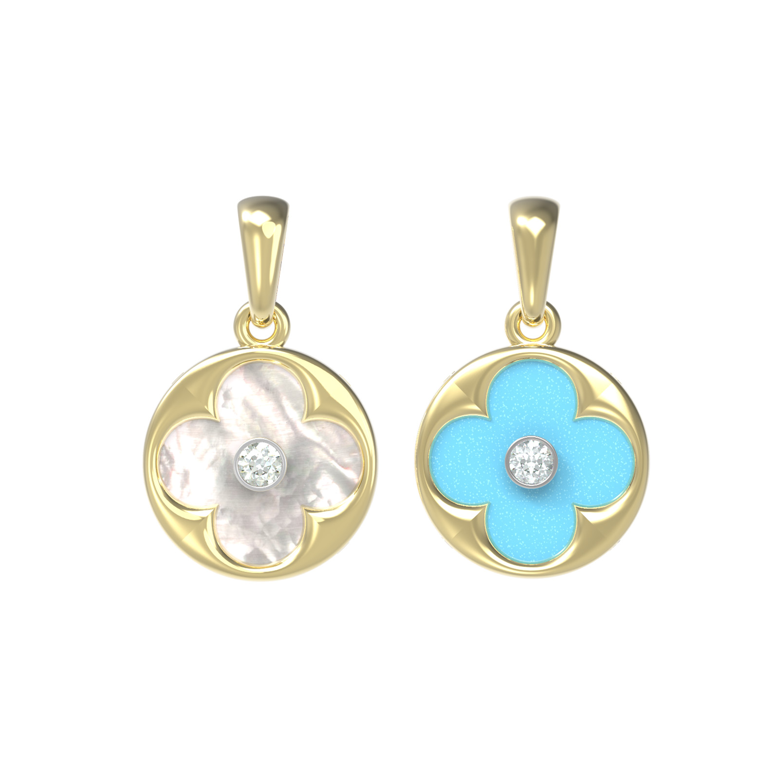 Подвеска из лимонного золота c бриллиантами, бирюзой и перламутром