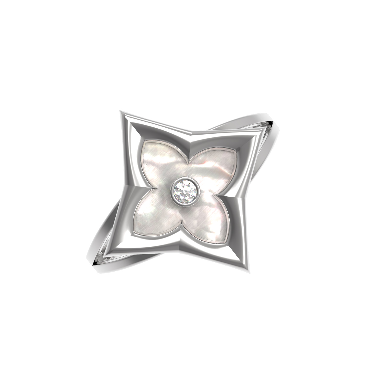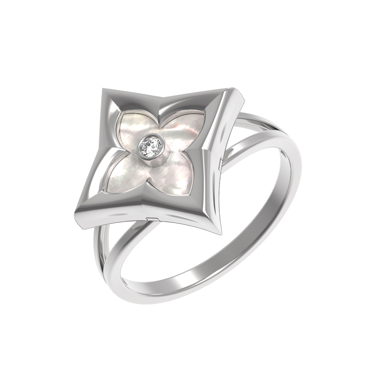Кольцо из белого золота c бриллиантами и перламутром