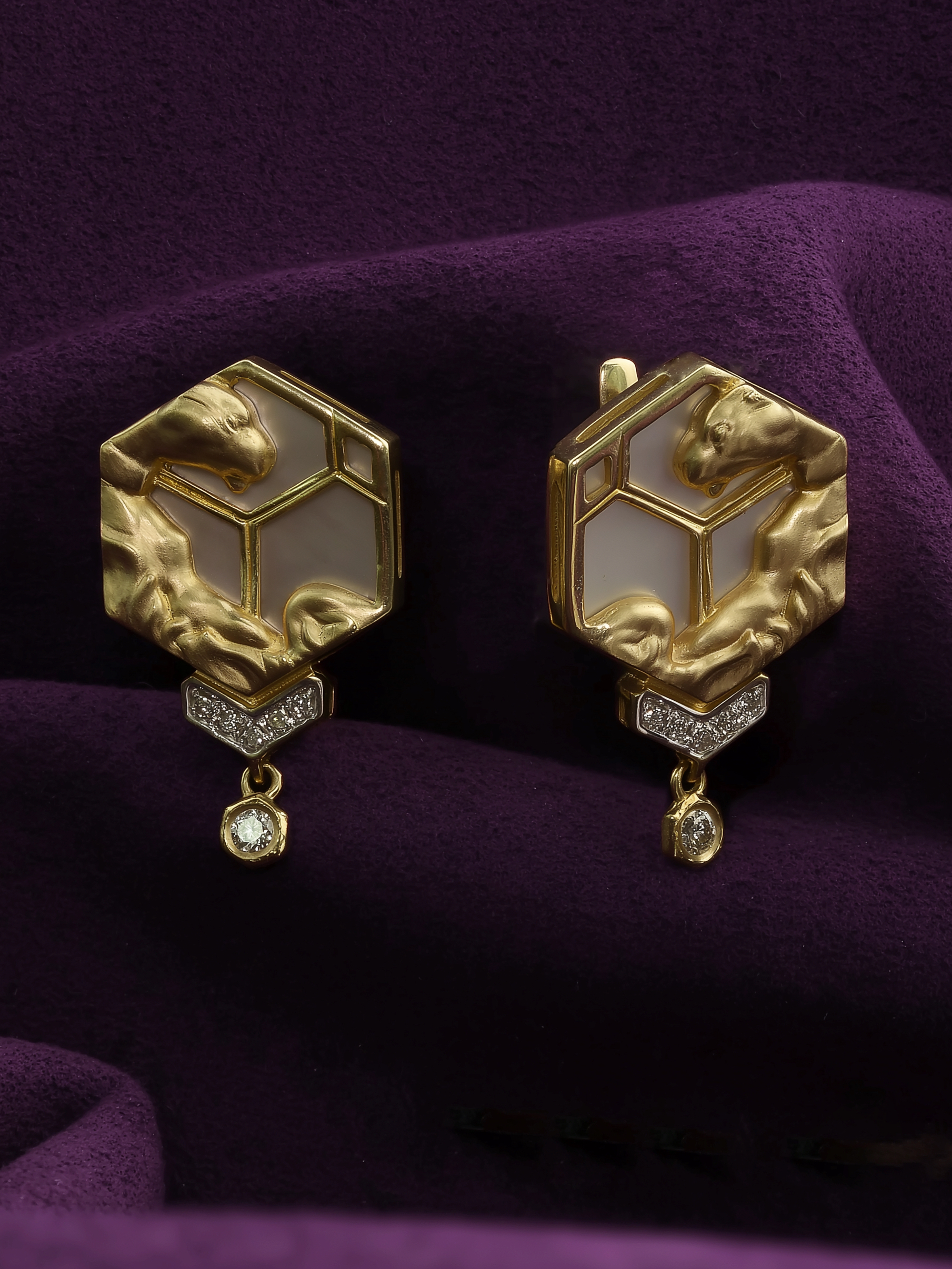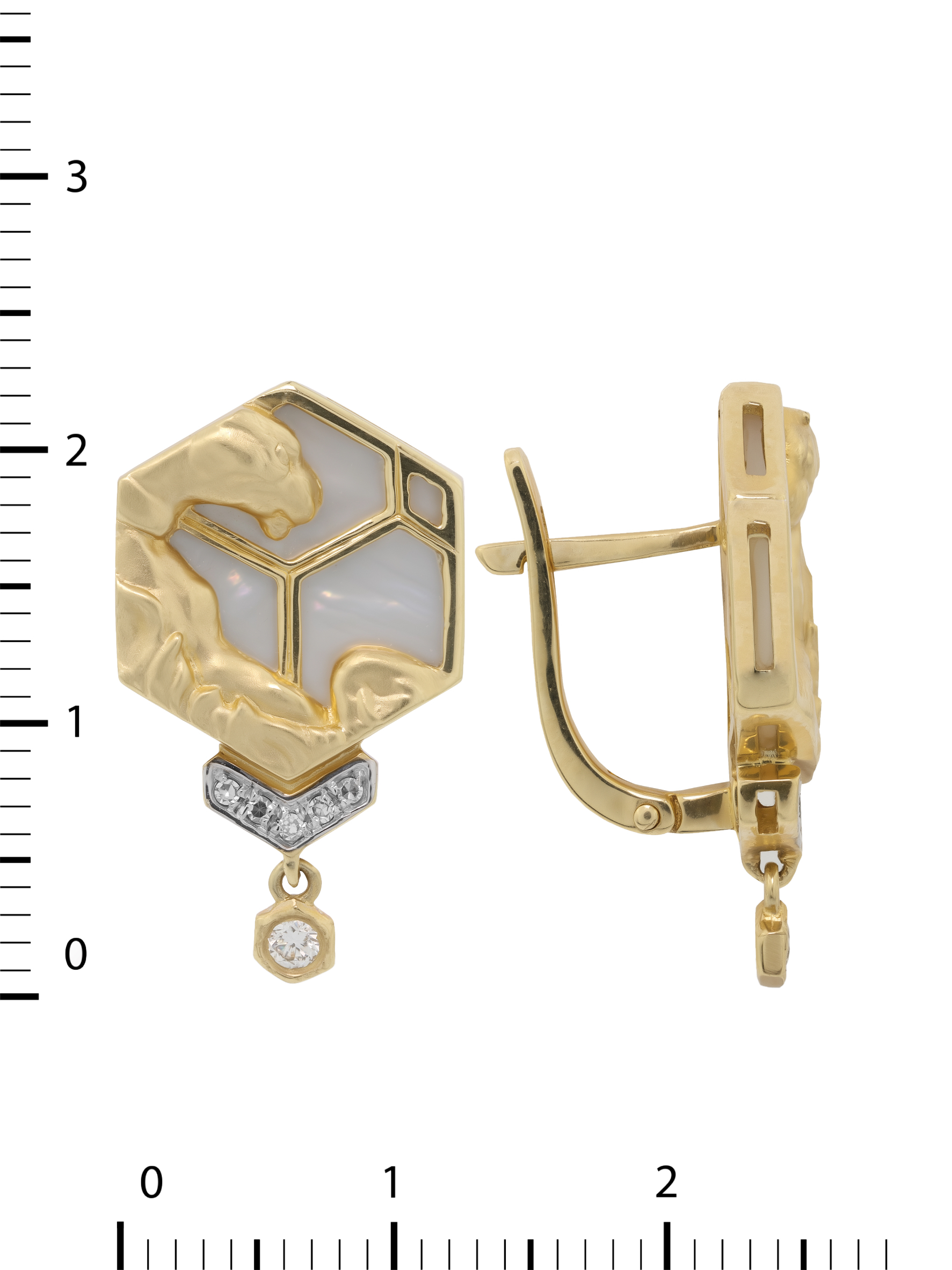 Серьги из лимонного золота c бриллиантами и перламутром