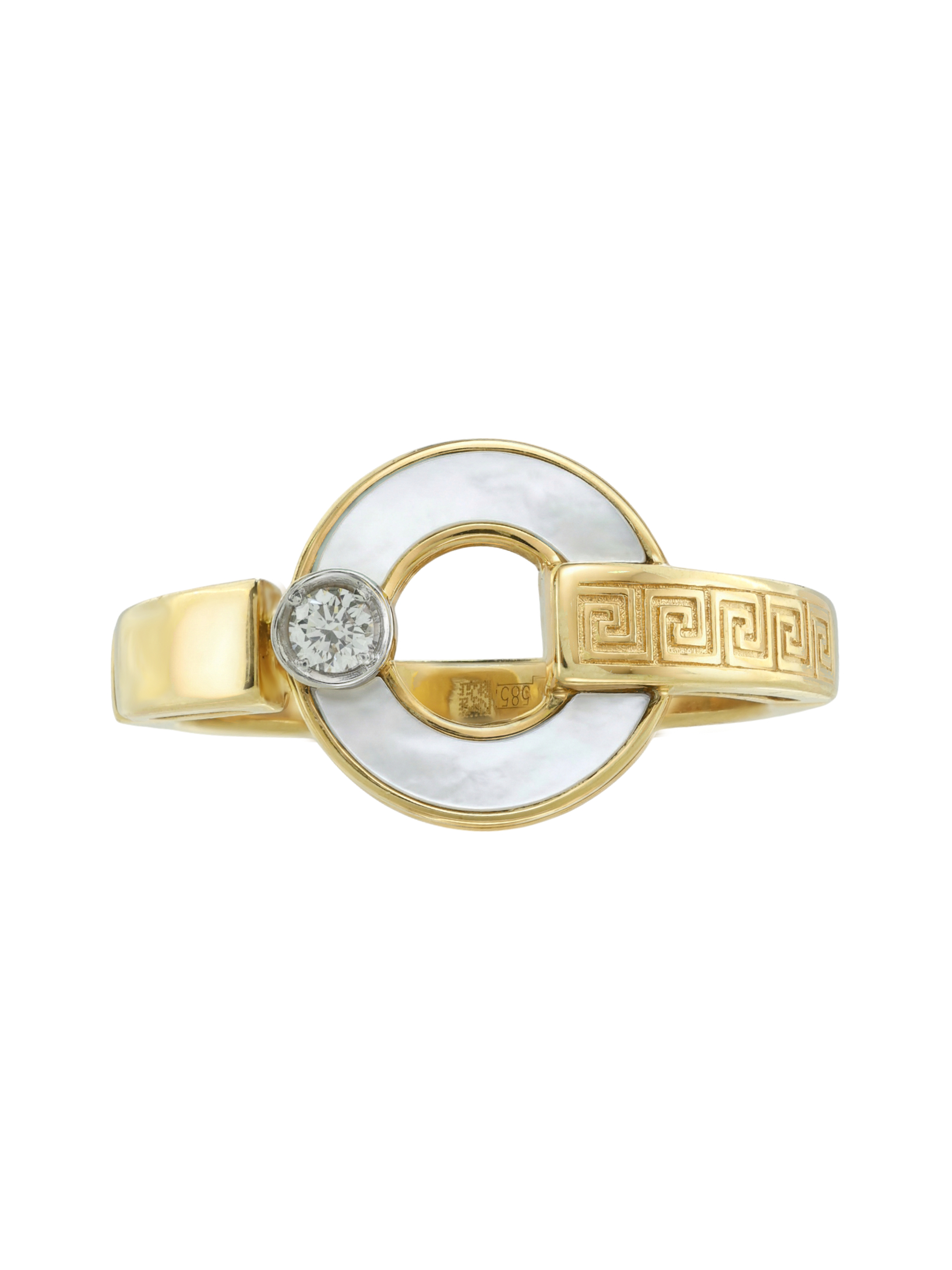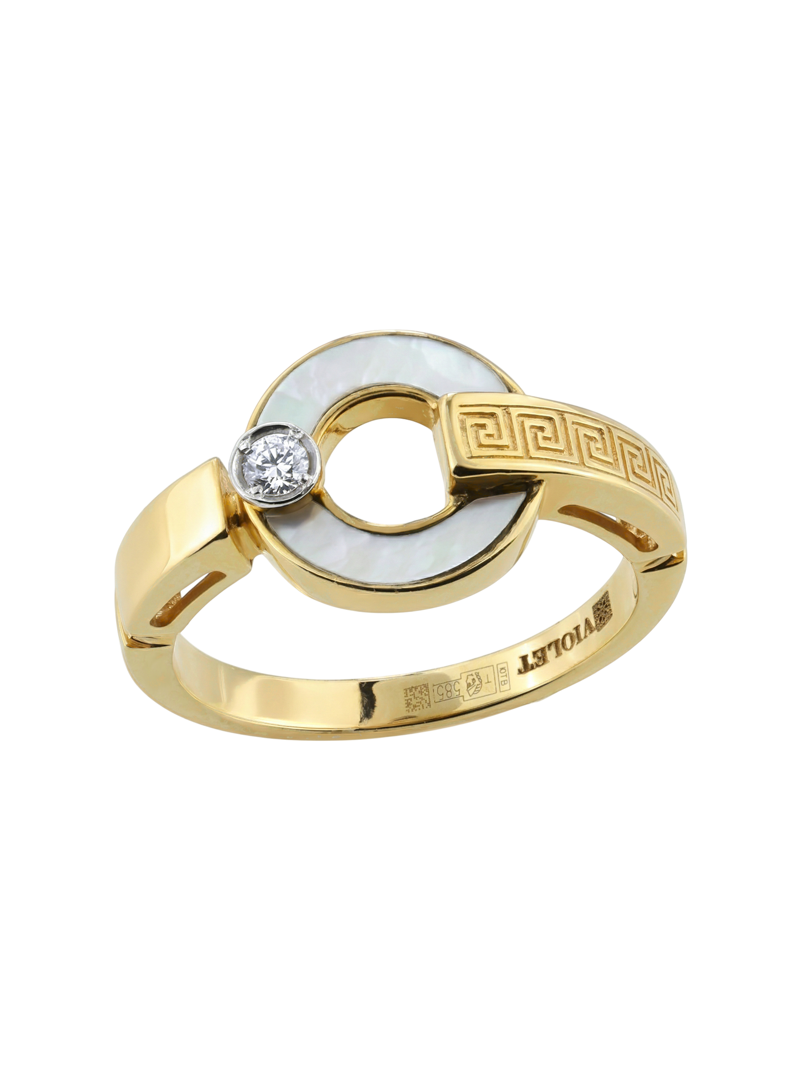 Кольцо из лимонного золота c бриллиантами и перламутром